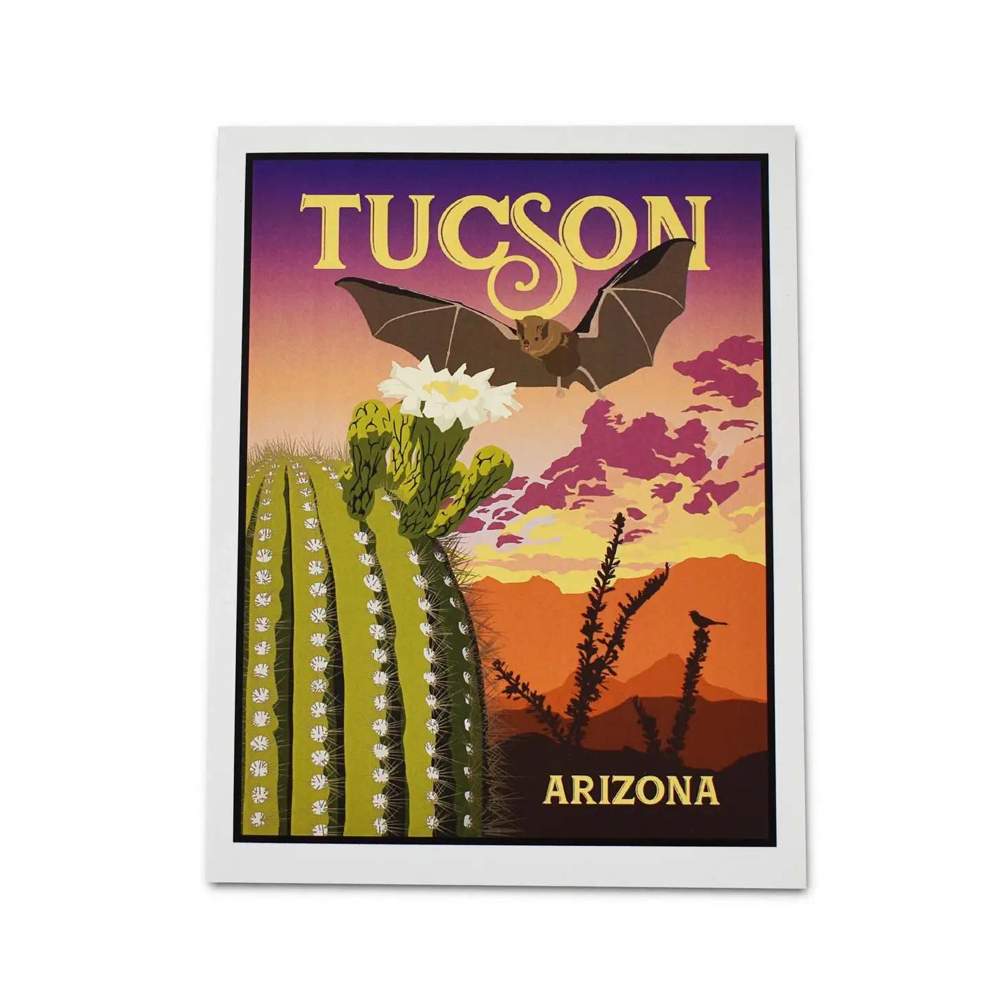 2007 hatte Dale die Idee, ein atemberaubendes Retro-Bild für ein Gepäcketikett zu kreieren, um seinen robusten Koffer am Flughafen erkennbar zu machen. Sein Konzept und seine Farbpalette wurden vom Grafikkünstler Pete Marenfeld so wunderschön illustriert, dass eine Partnerschaft geschlossen wurde. Dale und Cricket, seine andere Hälfte, kamen schnell zu dem Schluss, dass die Schönheit dieser Kunst nicht auf Kofferanhänger beschränkt werden kann, und haben in den letzten siebzehn Jahren ihre Produktlinien kontinuierlich erweitert. RetroTrek bietet eine Vielzahl von Produkten mit ikonischen Tucson-Motiven, darunter Aufkleber, Drucke, Kofferanhänger, Geschirrtücher, Notizkarten, Postkarten, Schlüsselanhänger, Poster und unser alljährliches Highlight, den Kalender. Wir freuen uns, das Beste aus Tucson und dem allgemeinen Südwesten auf unseren Produkten zu präsentieren, die, wann immer möglich, in Tucson hergestellt werden. Wir lieben es, die Lebendigkeit von Tucson widerzuspiegeln und mit Kunden zu interagieren, die unsere Vision schätzen.