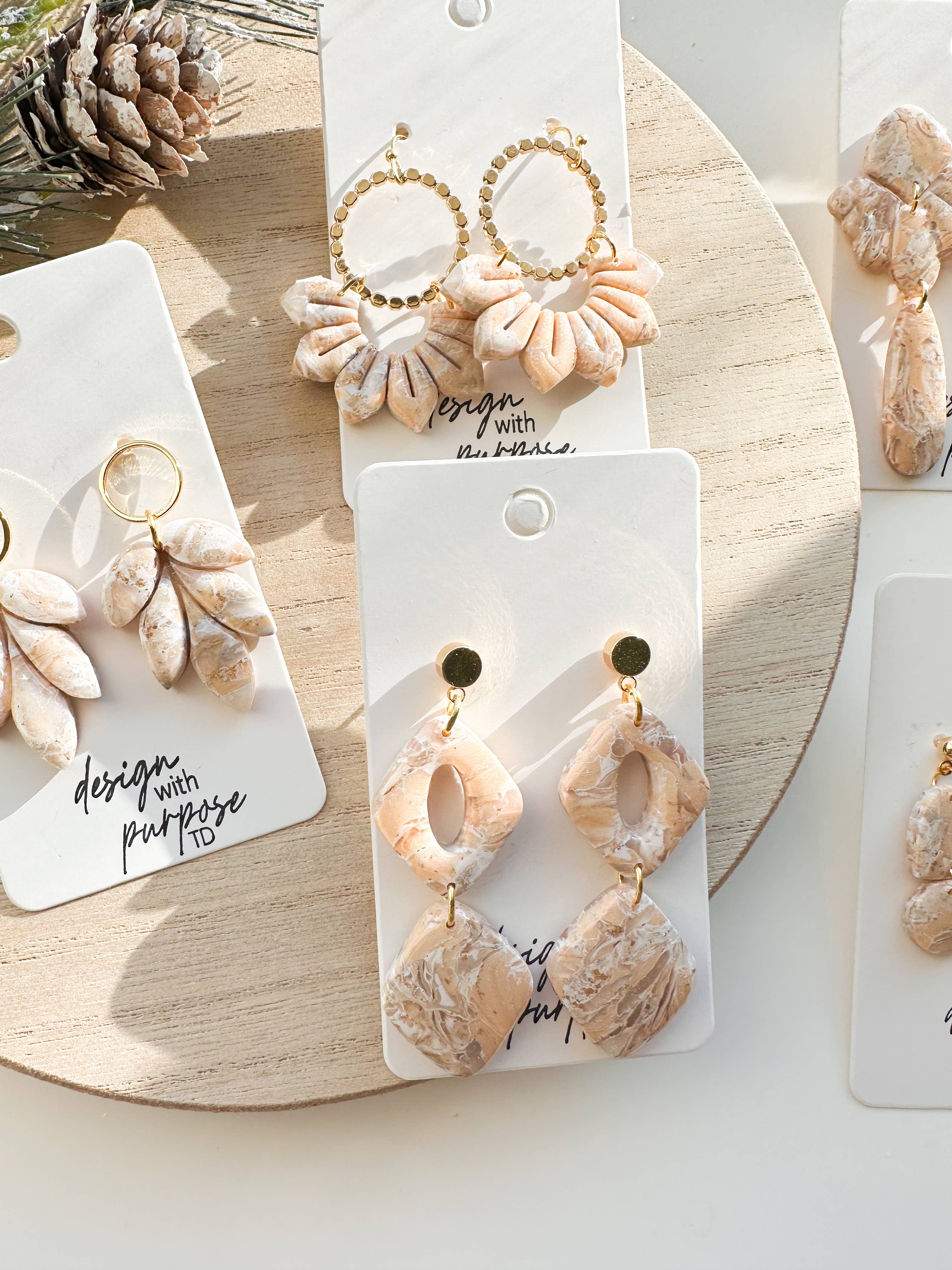 Design With Purpose ist ein kleines Unternehmen, das sich auf die Herstellung einzigartiger Ohrringe aus Polymer-Ton spezialisiert hat. Gegründet von Teanna Dosch, einer leidenschaftlichen Lehrerin, vereint dieser Traum Kreativität und Zweck, um atemberaubende Accessoires zu liefern, die ebenso einzigartig wie stilvoll sind. Mit einem starken Engagement für Qualität und Liebe zum Detail stellt Teanna sicher, dass jedes Paar Ohrringe mit Liebe und Sorgfalt von Hand gefertigt wird. Als Lehrerin an einer öffentlichen Schule unterstützt Teanna die Bildung, indem sie einen Teil ihrer Verkäufe direkt an Lehrer spendet, damit diese Bücher für ihre Klassenzimmer kaufen können. Ihre Bestellungen helfen, Bücher in die Hände von Kindern in den USA zu bringen und die nächste Generation für das Lesen zu begeistern.