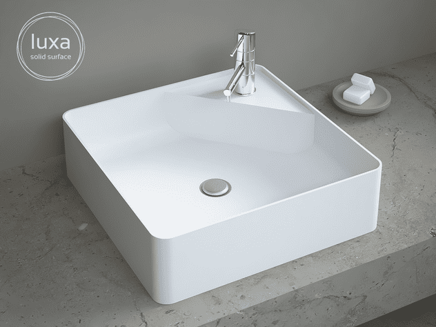 Alle unsere Produkte werden aus Solid Surface, auch Mineralwerkstoff genannt, hergestellt. Solid Surface, das zeitgenössische Referenzmaterial, entsteht aus einer Mischung aus echtem Stein und Harz und wird einem sorgfältigen Herstellungsprozess unterzogen, um ein glattes, mattweißes Finish zu erzielen, das eine unvergleichliche Beständigkeit gegen Flecken und Abnutzung bietet. Es ist ein widerstandsfähiges Material mit langer Lebensdauer, fleckenbeständig, leicht reparierbar, mit unsichtbaren Fugen nach dem Schleifen und pflegeleicht, da es homogen und nicht porös ist. Sie können es mit einem doppelseitigen Schwamm pflegen (mit einer weichen Seite für die tägliche Reinigung und einer sehr feinkörnigen Seite für hartnäckige Flecken oder Kratzer, die durch Schleifen entfernt werden können).