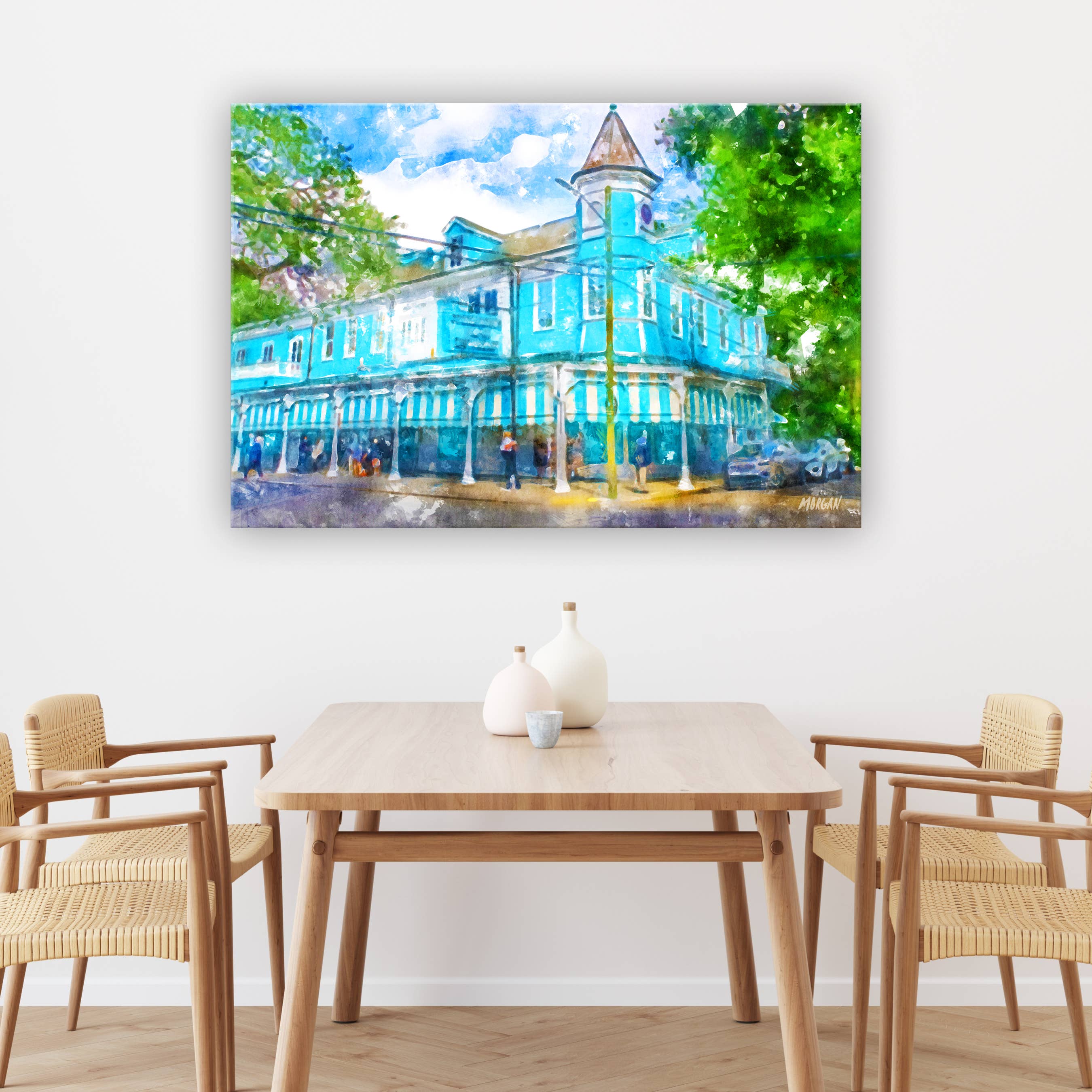 Postkarten, Grußkarten, Kunstdrucke und Leinwände mit ikonischen lokalen Szenen in Ihrer Nähe vom beliebten Künstler Morgan. Jeder Ort hat seine eigene Persönlichkeit und Menschen, die ihn zu etwas Besonderem und Geliebtem machen. Wir versuchen, die Persönlichkeit von Orten durch schöne und erschwingliche Kunst einzufangen. Seit vielen Jahren betreibt mein Ehemann eine vielbeschäftigte Werbeagentur, in der ich ihn zwischen Freiwilligenarbeit für Wohltätigkeitsorganisationen und der Pflege der Bedürfnisse meiner Familie unterstützt habe. Da Covid-19 im Jahr 2020 den Globus heimsuchte, sah sich meine Familie vielen unerwarteten Veränderungen gegenüber - eine davon bestand darin, viel mehr Stunden zusammen zu verbringen, nur wir vier in unserem eigenen Haus. Wir hatten oft davon geträumt, ein weniger hektisches Familienunternehmen zu gründen und etwas zu tun, das uns allen Spaß machte und das wir der Gesellschaft etwas zurückgeben könnten. Daher wurde G.O.A.T. geboren!