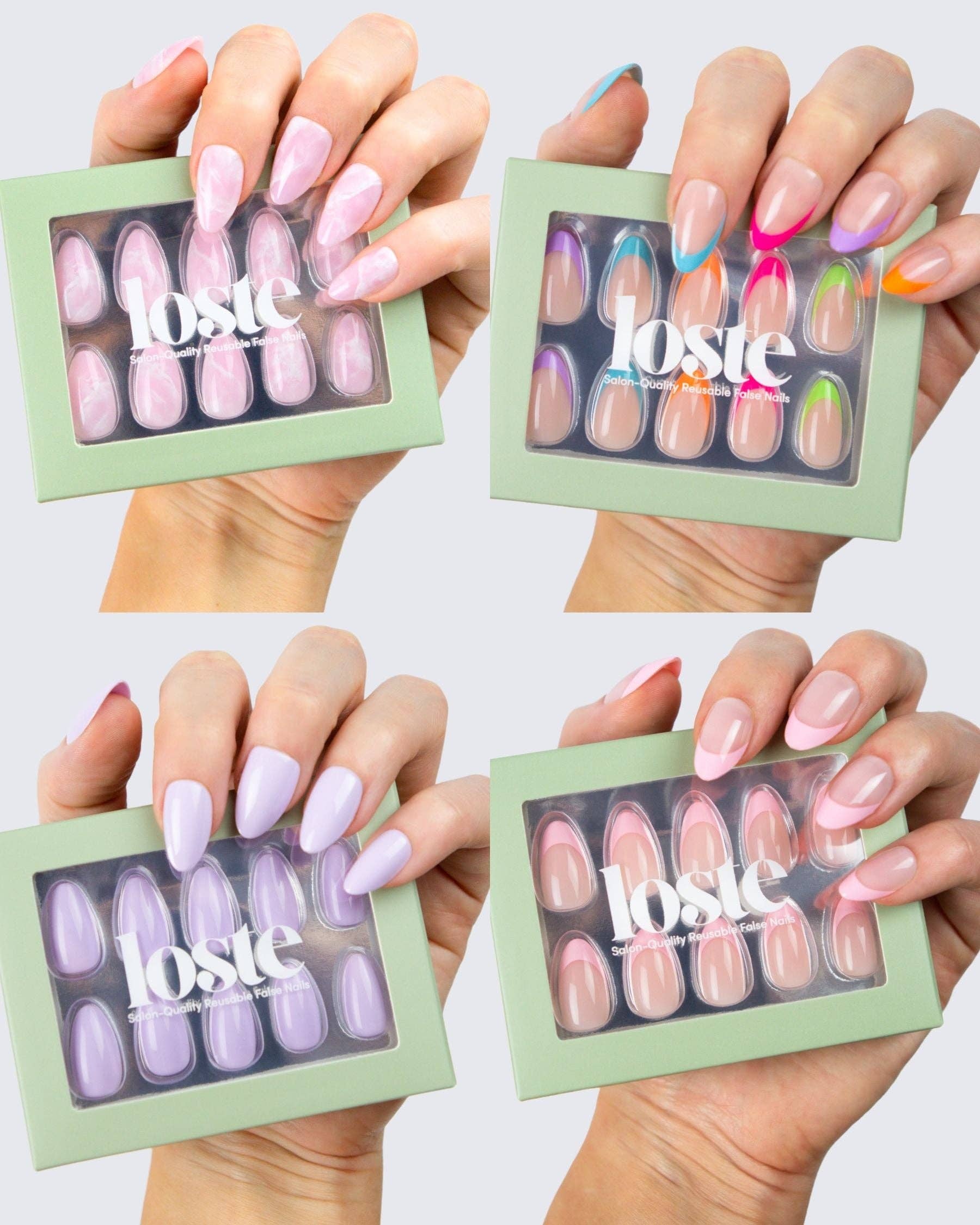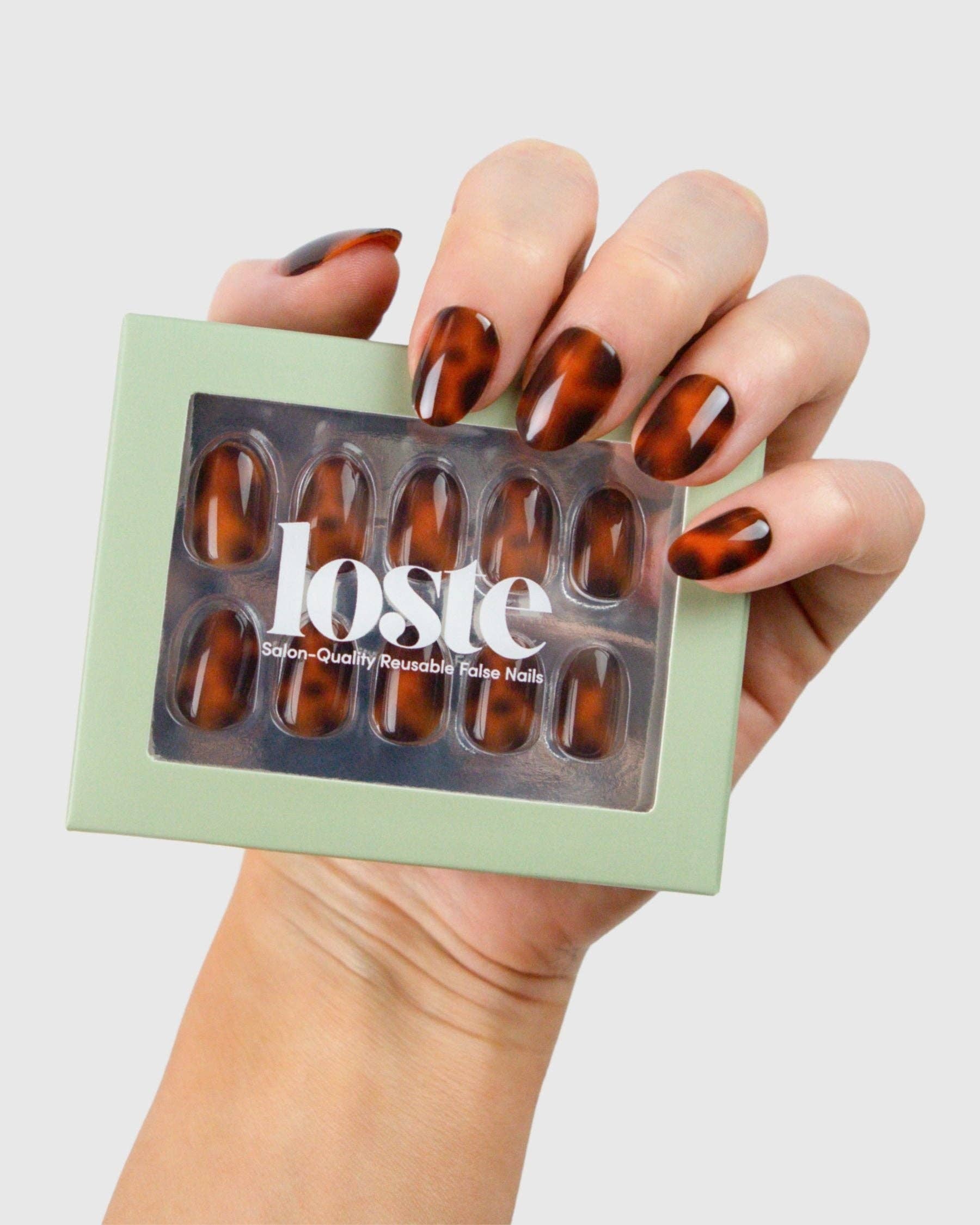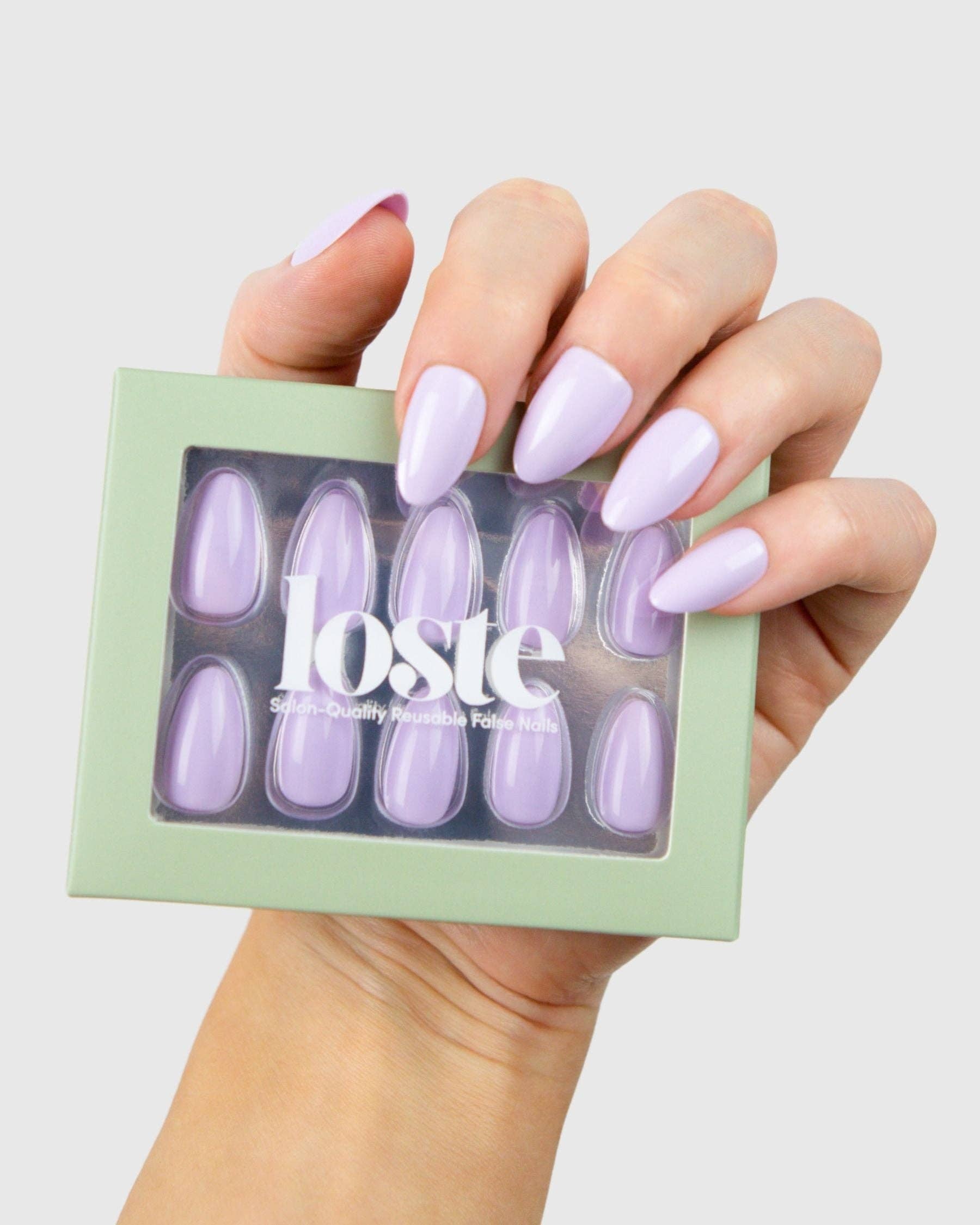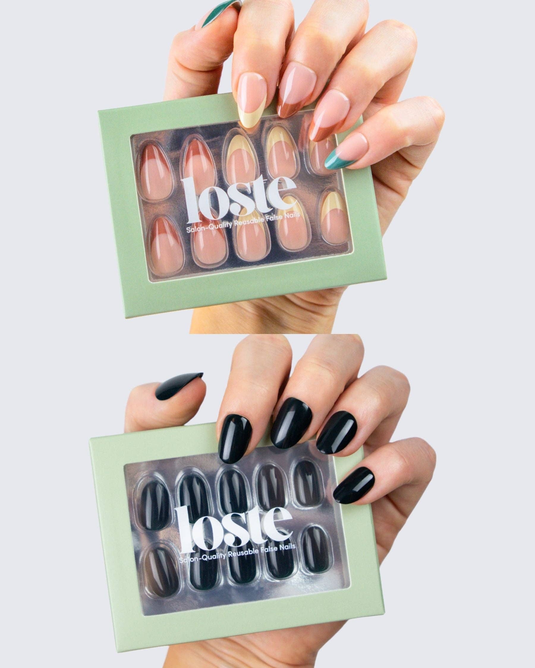 Loste False Nails Die wiederverwendbare Revolution Loste ist hier, um die Art und Weise, wie Sie Ihre Nägel machen, zu verändern. Aus der Frustration über dünne Press-ons und überteuerte Salontermine geboren, haben wir uns vorgenommen, etwas Besseres zu schaffen: Nägel, die wie Gel aussehen, sich wie Gel tragen, aber nicht absplittern, spalten oder Ihre natürlichen Nägel ruinieren. Und das Beste daran? Sie sind vollständig wiederverwendbar. Loste ist eine neue Art von Press-on. Mit 5-lagiger, weicher Gel-Technologie gefertigt, sind unsere Nägel ultra-stark, ultra-glänzend und langanhaltend. Kein UV. Kein Schaden. Jedes Set enthält alles, was Sie für eine makellose Anwendung in fünf Minuten benötigen, egal ob Sie sich für einen Abend vorbereiten oder sie am Pool im Urlaub auftragen. Wiederverwendbar. Reisefreundlich. Salonqualität. Das ist keine durchschnittliche Maniküre.