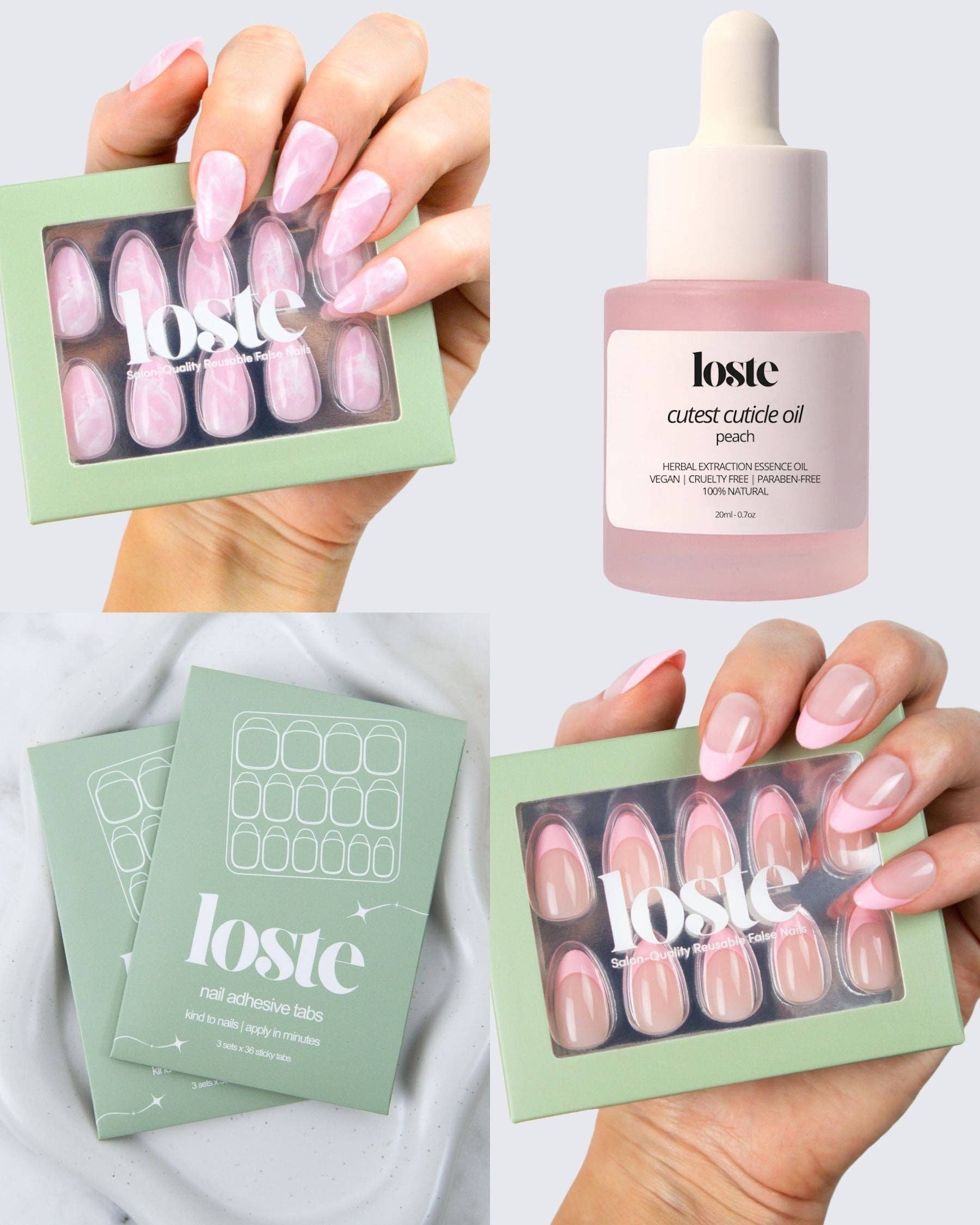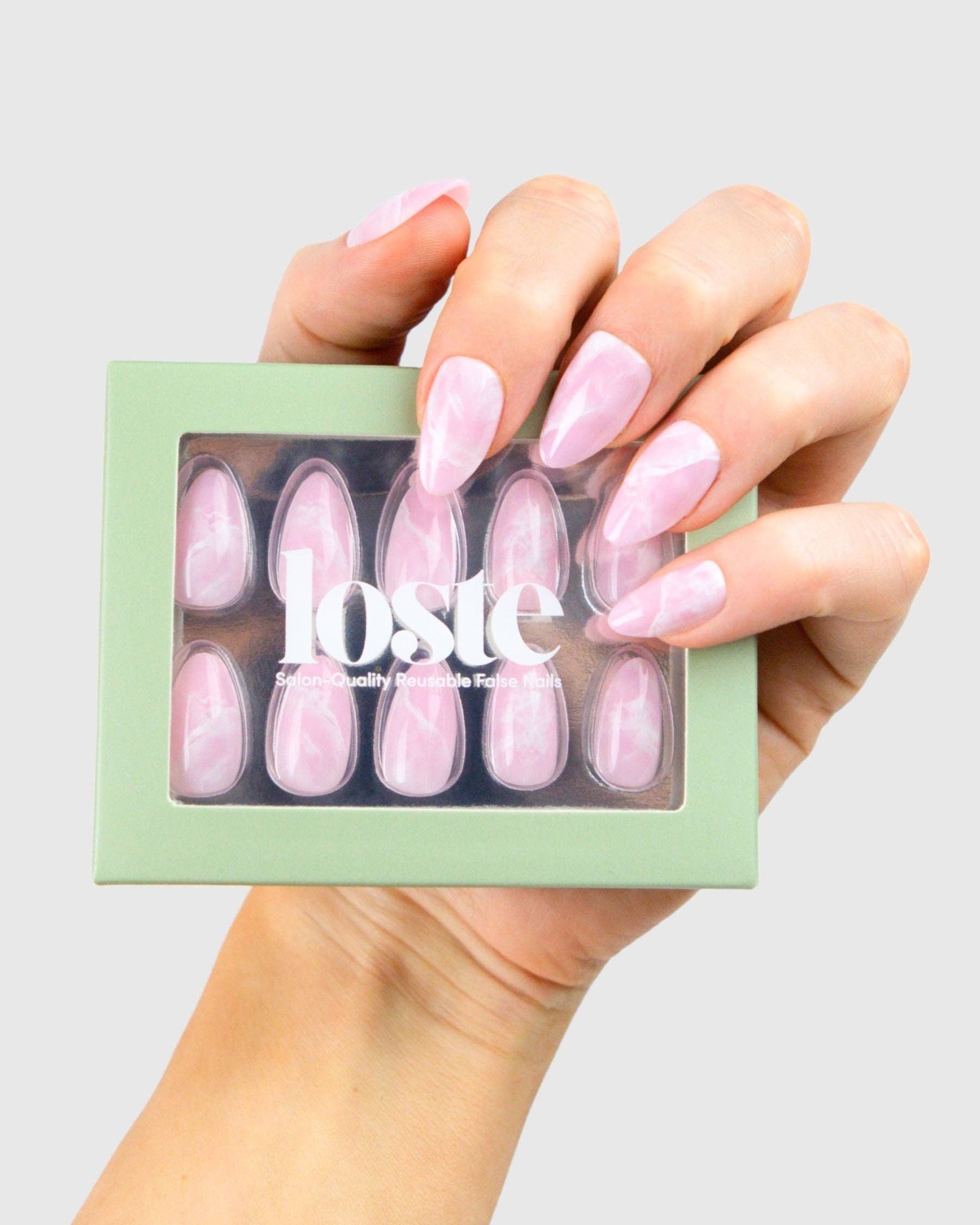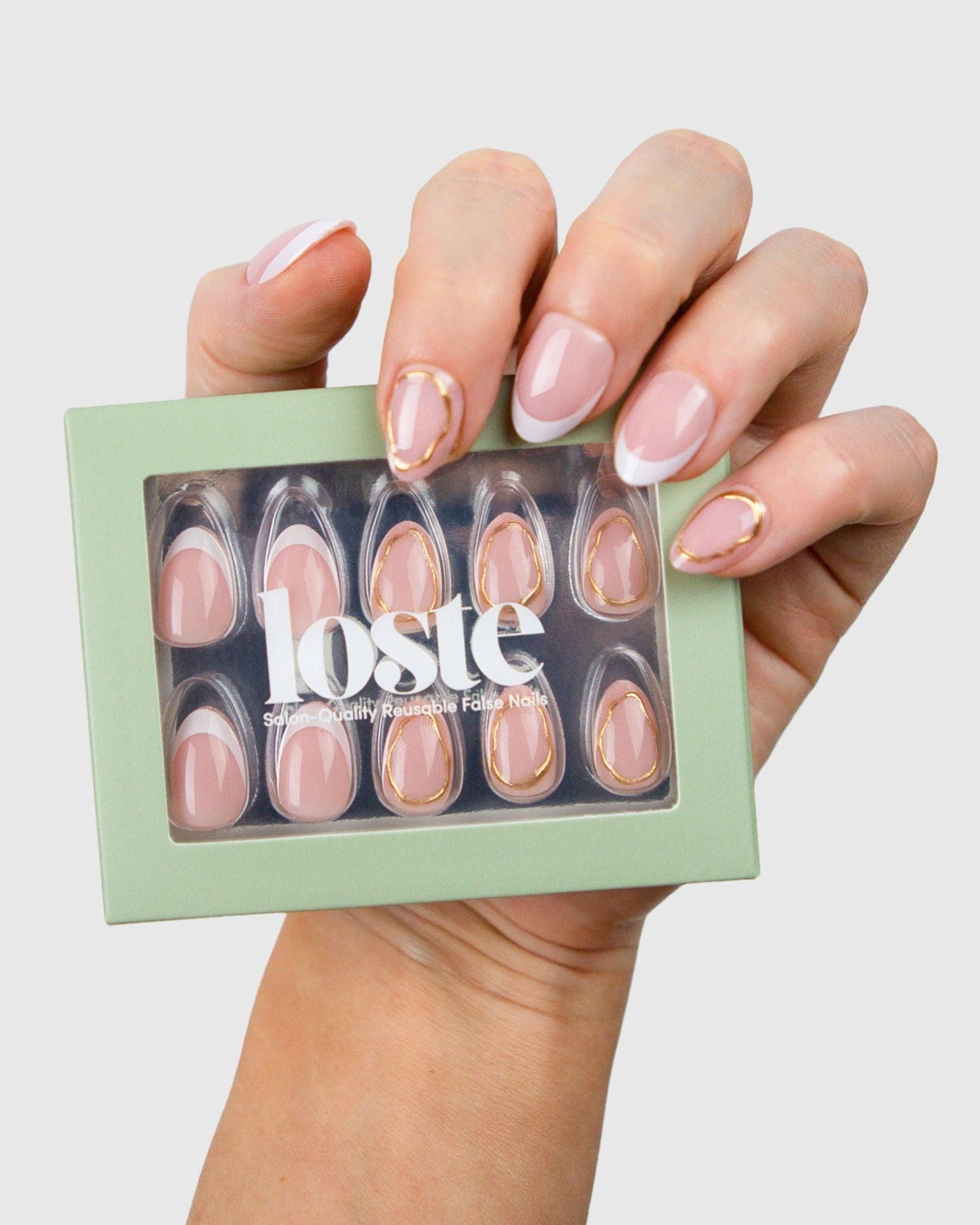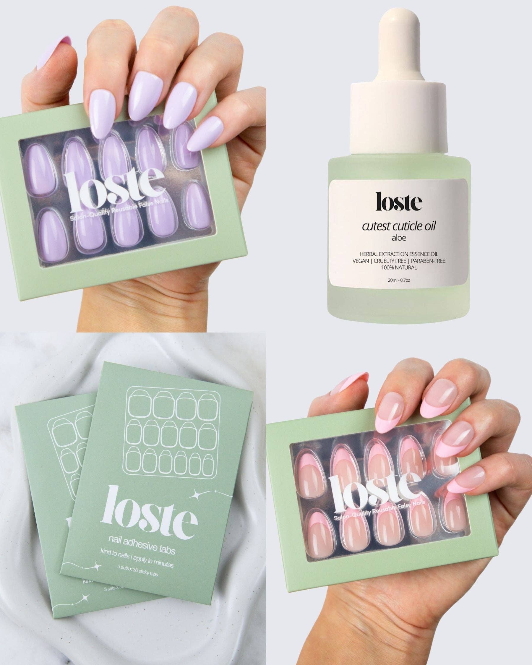 Loste False Nails Die wiederverwendbare Revolution Loste ist hier, um die Art und Weise, wie Sie Ihre Nägel machen, zu verändern. Aus der Frustration über dünne Press-ons und überteuerte Salontermine geboren, haben wir uns vorgenommen, etwas Besseres zu schaffen: Nägel, die wie Gel aussehen, sich wie Gel tragen, aber nicht absplittern, spalten oder Ihre natürlichen Nägel ruinieren. Und das Beste daran? Sie sind vollständig wiederverwendbar. Loste ist eine neue Art von Press-on. Mit 5-lagiger, weicher Gel-Technologie gefertigt, sind unsere Nägel ultra-stark, ultra-glänzend und langanhaltend. Kein UV. Kein Schaden. Jedes Set enthält alles, was Sie für eine makellose Anwendung in fünf Minuten benötigen, egal ob Sie sich für einen Abend vorbereiten oder sie am Pool im Urlaub auftragen. Wiederverwendbar. Reisefreundlich. Salonqualität. Das ist keine durchschnittliche Maniküre.