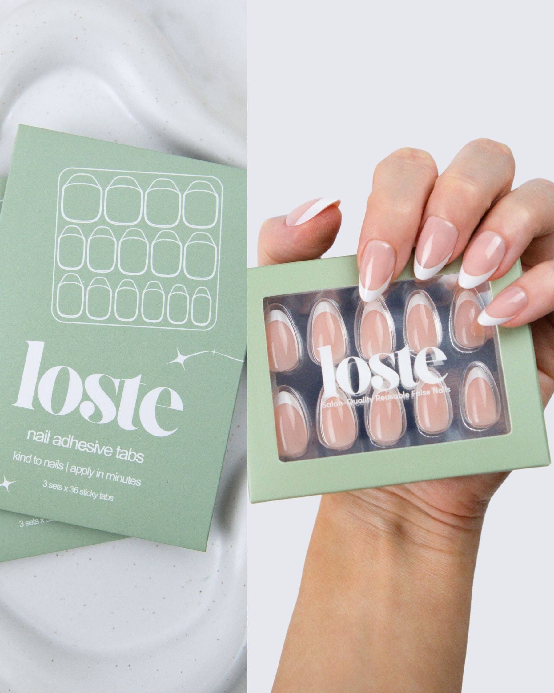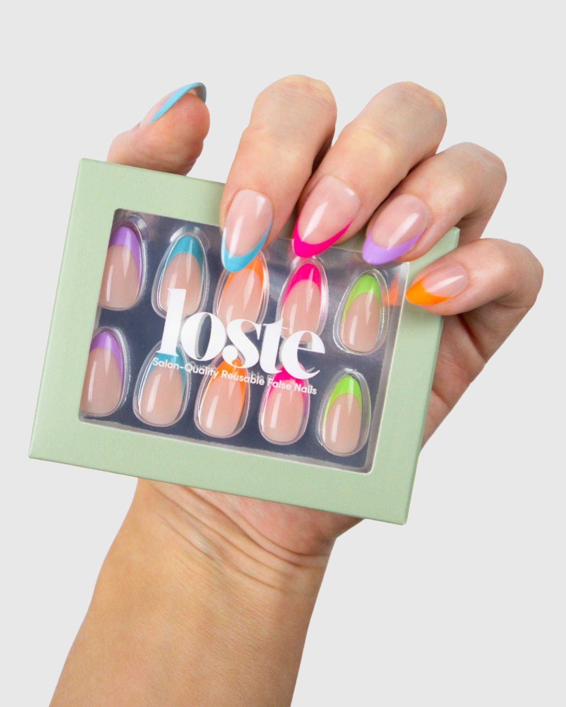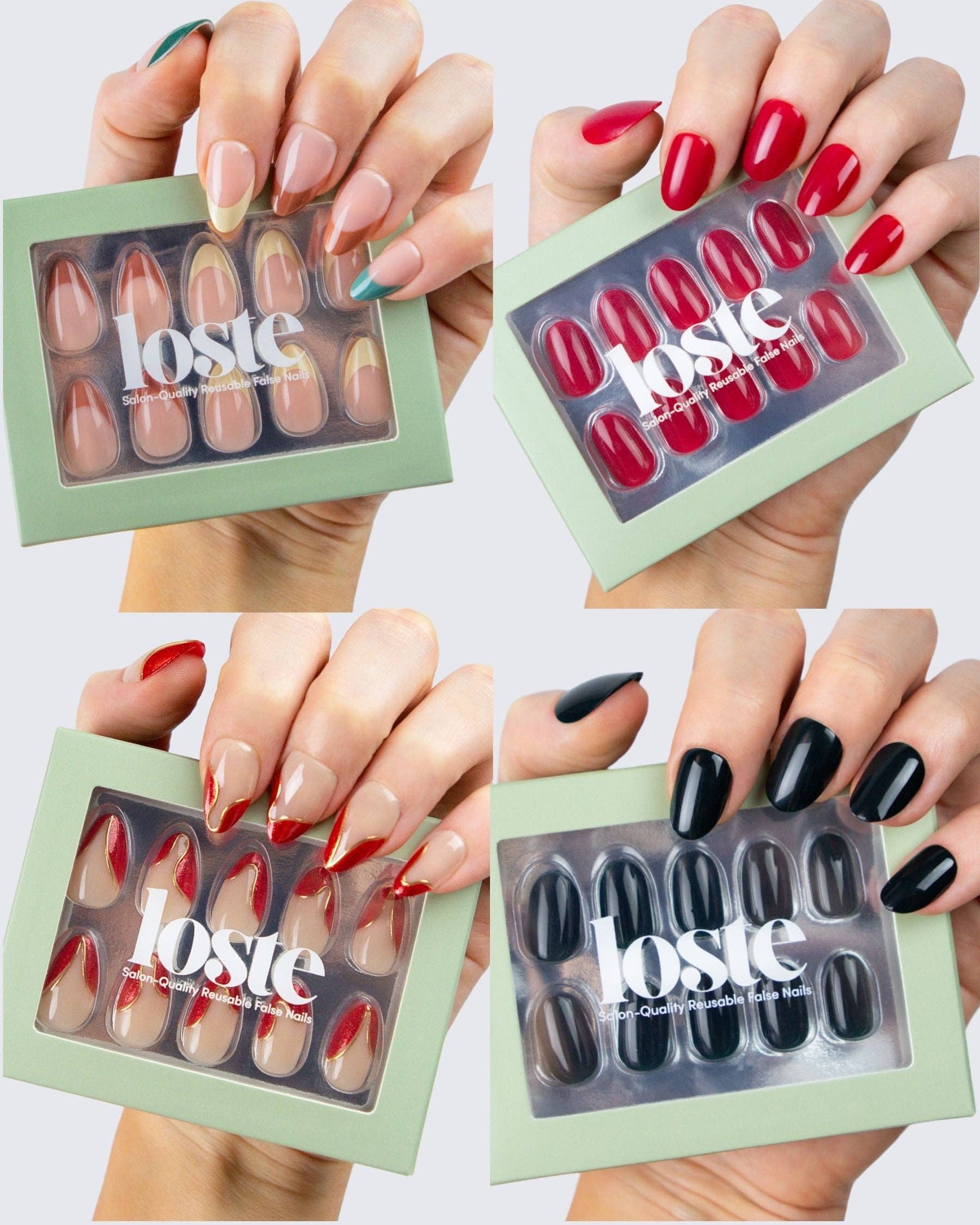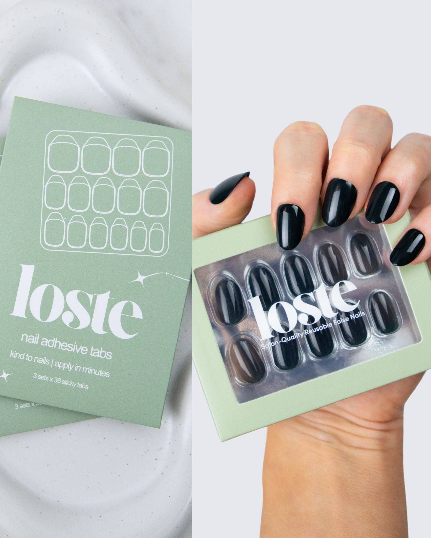 Loste False Nails Die wiederverwendbare Revolution Loste ist hier, um die Art und Weise, wie Sie Ihre Nägel machen, zu verändern. Aus der Frustration über dünne Press-ons und überteuerte Salontermine geboren, haben wir uns vorgenommen, etwas Besseres zu schaffen: Nägel, die wie Gel aussehen, sich wie Gel tragen, aber nicht absplittern, spalten oder Ihre natürlichen Nägel ruinieren. Und das Beste daran? Sie sind vollständig wiederverwendbar. Loste ist eine neue Art von Press-on. Mit 5-lagiger, weicher Gel-Technologie gefertigt, sind unsere Nägel ultra-stark, ultra-glänzend und langanhaltend. Kein UV. Kein Schaden. Jedes Set enthält alles, was Sie für eine makellose Anwendung in fünf Minuten benötigen, egal ob Sie sich für einen Abend vorbereiten oder sie am Pool im Urlaub auftragen. Wiederverwendbar. Reisefreundlich. Salonqualität. Das ist keine durchschnittliche Maniküre.