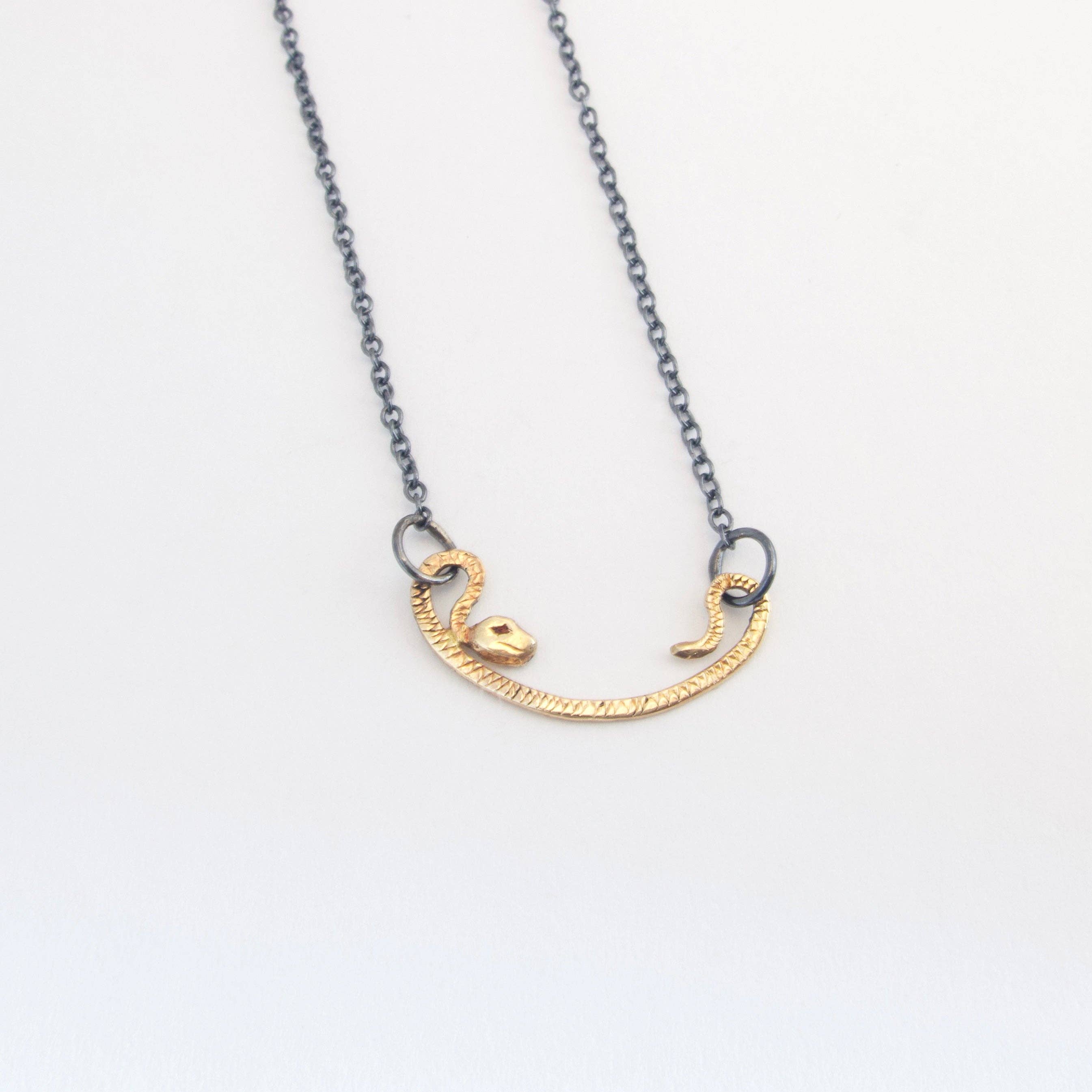 House Of Snakes ist das Ehepaar Bob Atkinson und Nikki Alexander. Beide Künstler arbeiteten viele Jahre in New York City mit einflussreichen Designern zusammen, Bob als Designassistent von Melissa Joy Manning und Nikki als Designassistentin von Jane Diaz. Während dieser Zeit machten sie Maßanfertigungen für Freunde und Familie und schließlich wurde House Of Snakes als ihre eigene Marke geboren. Ihre Linie konzentriert sich auf sorgfältig gefertigten, von Hand gefertigten Schmuck, sowohl filigrane als auch ausgefallene Stücke. Bob und Nikki sind beide autodidaktische Juweliere und haben einen einzigartigen und doch raffinierten Umgang mit ihren Materialien. Sie kreieren Schmuckstücke, die den Träger schmücken und stärken.