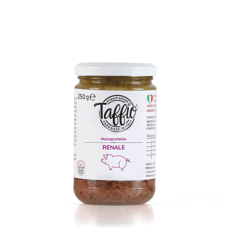 Taffio entstand aus der Suche nach einem Produkt, das der Qualität und den Standards einer echten Hausmannskost entspricht. Wir wissen, dass das Kochen für unsere Vierbeiner oft viel Zeit und Mühe kostet, aber vor allem wird es schwierig, eine Hausdiät einzuhalten, wenn Sie in den Urlaub fahren. Nach vielen Recherchen haben wir in Modena dieses kleine Unternehmen gefunden, das sich mit Fleisch für den menschlichen Gebrauch befasst. In Zusammenarbeit mit ihnen und mit Unterstützung spezialisierter Tierärzte haben wir ein Produkt untersucht, das der Qualität und Ernährung einer echten Hausdiät entspricht. Die Verarbeitung von Rohstoffen ist uns sehr wichtig und wir kümmern uns um jedes Detail, um jeden Gaumen zufrieden zu stellen. Das Produkt wird ausschließlich in ein dicht verschlossenes GLASGEFÄSS gegeben. Nach Fertigstellung des Produkts wird die Sterilisation durch eine Wärmebehandlung durchgeführt, bei der die Gläser in einem abgedeckten Topf fest verschlossen werden. Auf diese Weise wird eine Sterilisation erreicht, die ausreicht, um das verpackte Produkt über die Zeit stabil zu machen, die jedoch nicht vollständig aseptisch ist und nicht auf unbestimmte Zeit unverändert bleiben kann. Eine Wärmebehandlung ist unerlässlich, da sie das Lebensmittel vor mikrobieller Kontamination schützt.