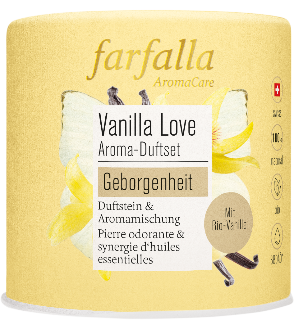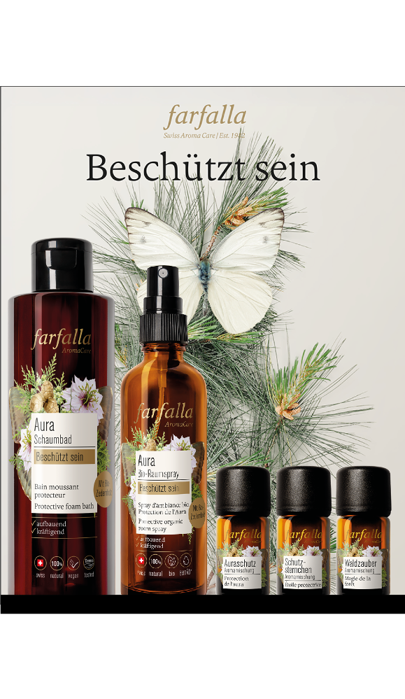 Beflügle dein Wohlbefinden mit farfalla. farfalla ist Wellbeing. Ganzheitlich und nachhaltig. Auf der Basis biologisch gewonnener und in der Schweiz verarbeiteter, 100 % natürlicher ätherischer Öle kreiert farfalla eine Fülle von Naturkosmetik-, Pflege- und Wellbeing-Produkten, die uns täglich neu beflügeln. Die Kraft der Aromapflanze steckt in jedem einzelnen Produkt. ->100 % natürlich: höchstmöglicher Anteil an Bio-Rohstoffen(kontrolliert biologischer Anbau) 0 % Synthetik, Nano oder GMO ->Fairer Handel: langjährige Lieferantenbeziehungen und Anbauprojekte mit Abnahmegarantien und sozialem Mehrwert ->Nachhaltigkeit: CO2 neutral, nachhaltige Verpackungen, klimaneutraler Versand, soziale Projekte ->Tierwohl: tierversuchsfrei, vegan ->Unternehmen: Familiengeführt in 2. Generation, konzernfrei ->Zertifizierungen: zertifiziert nachhaltiges Unternehmen (CSE), zertifizierte Bio- / Naturkosmetik Natrue Unser Know-how für höchste Qualität • Pioniere der Naturkosmetik mit In-House Entwicklungserfahrung seit vier Jahrzehnten • Gelebtes Aromatherapiewissen durch die langjährige Zusammenarbeit mit über 700 Spitälern • Herstellung in den eigenen Schweizer ISO-zertifizierten Produktionsstätten in Uster und im Jura • Wir unterstützen Hilfsprojekte zur Geburtshilfe in Afrika und Europa. Für einen gesunden Start ins Leben.
