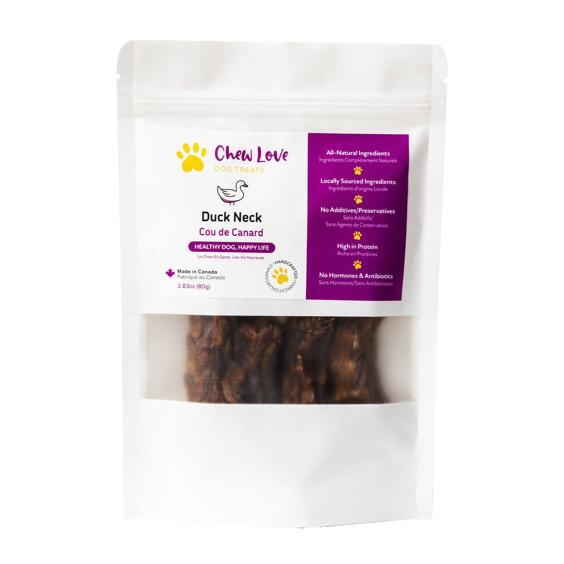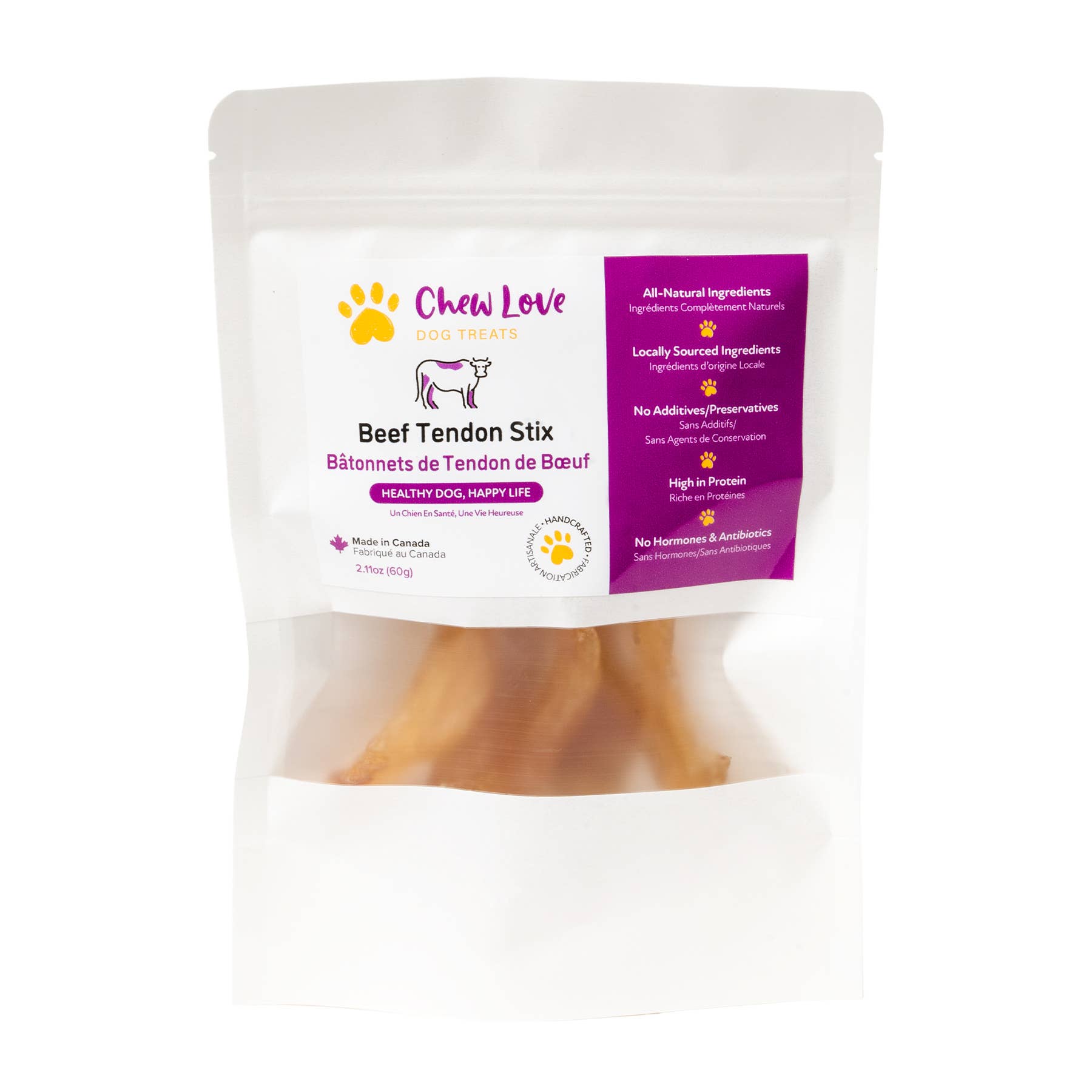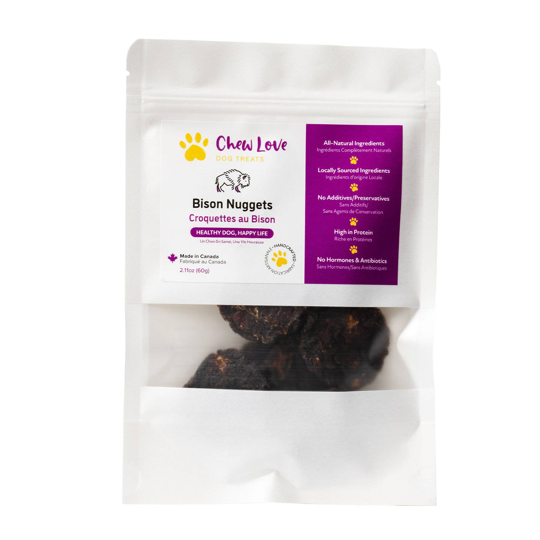 Unsere Mission ist es, gesunde und leckere Hunde-Leckereien anzubieten. Diese Mission ist unserer Liebe und Dankbarkeit für alle Hunde treu, damit sie ein gesünderes und glücklicheres langes Leben führen können, was zu glücklicheren Momenten für Sie und Ihren Hund führen wird. Alle Zutaten für unsere leckeren und gesunden Hunde-Leckereien werden in British Columbia hergestellt und handgefertigt und stammen aus der Region von den angesehensten Fleischlieferanten und Farmen der Region. Jeder Bissen ist handgefertigt und ganz natürlich. Wir fügen keine Zusätze oder Konservierungsstoffe hinzu; jede Behandlung ist reich an Proteinen ohne Hormone oder Antibiotika. Frisch und geschmackvoll wurden unsere Produkte sorgfältig zu raffinierten Sorten formuliert, die das Interesse von Hunden wecken, auch wenn sie an eine selektive Ernährung gewöhnt sind. Wir sind sehr stolz und gespannt, wie glücklich Ihre Hunde sein werden, wenn sie ihren ersten Bissen von ihrem Lieblingsgenuss nehmen; es wird Chew Love sein! - „Gesunder Hund, glückliches Leben“