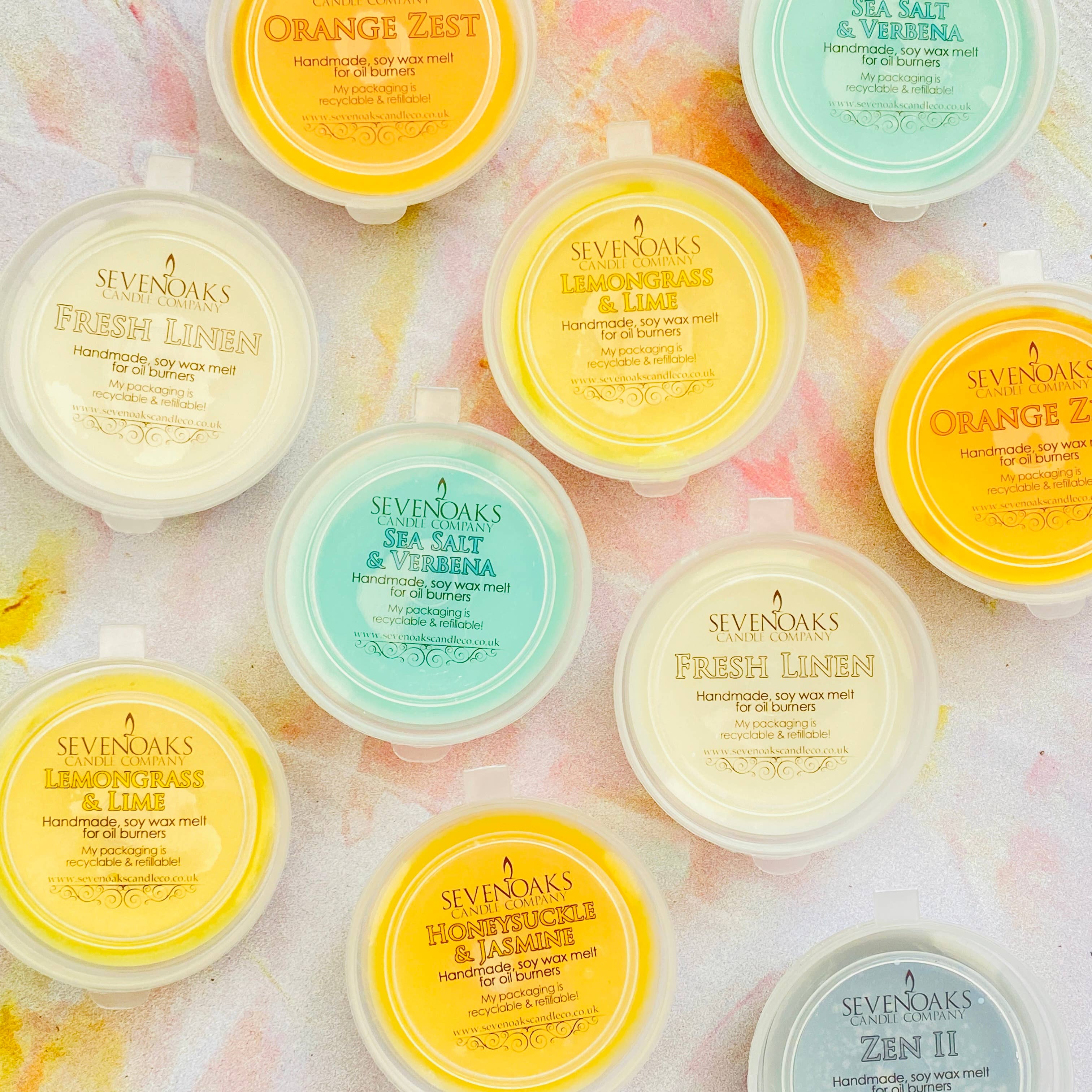 Wir sind ein familiengeführtes Unternehmen, das 2013 gegründet wurde. Geleitet von Laura und unterstützt von ihrem Ehemann, ihrer Mutter und gelegentlich sogar ihrer 7-jährigen Tochter Lily! Laura ist eine echte Sennocianerin, da sie in Sevenoaks geboren und aufgewachsen ist, wo sie noch immer lebt. Der Name der Stadt leitet sich vom altenglischen Wort "Seouenaca" ab, dem Namen einer kleinen Kapelle in der Nähe von sieben Eichen um das Jahr 800 n. Chr. Unser Schwerpunkt liegt auf Wiederverwendung und Recycling. Wir ermutigen unsere Kunden, ihr Kerzenglas wiederzuverwenden oder nachzufüllen, und wir recyceln auch so viel Verpackungsmaterial wie möglich (hauptsächlich Kartons und Füllmaterial) von anderen lokalen Unternehmen. Wir verwenden Sojawachs, das nachhaltig, pflanzlich und langsam brennend ist, was es ideal für Kerzen macht. Unsere Düfte sind ebenfalls vegan und unsere Dochte bestehen entweder aus Baumwolle oder Papier - hier gibt es kein Metall! Im Jahr 2020 haben wir unser Sortiment um eine kleine, aber wachsende Auswahl an Seifen und Lotionen erweitert. Diese sind alle vegan und parabenfrei. Bestellungen werden in der Regel innerhalb einer Woche versandt, können jedoch in besonders arbeitsreichen Zeiten etwas länger dauern. Zögern Sie nicht, uns für ein Echtzeit-Update zu unserem Produktionsplan zu kontaktieren.