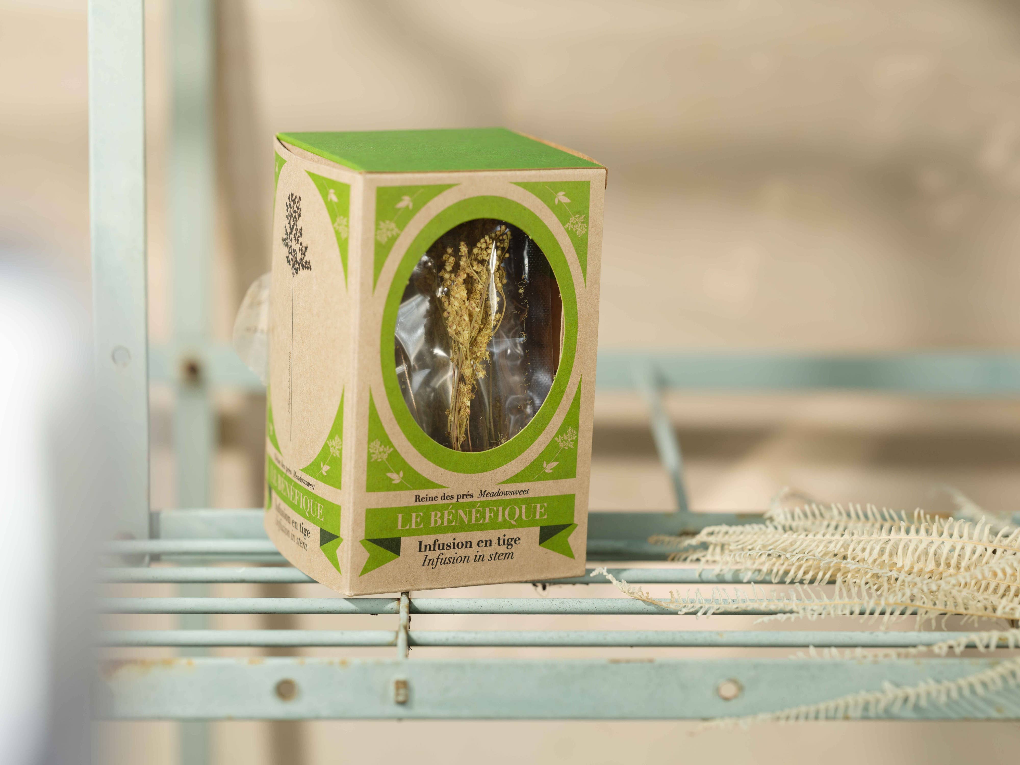 LE BENEFIQUE ist eine Marke für Bio- und Wildtees und alle Pflanzen werden Stamm für Stiel von Hand gepflückt. Die Herstellung erfolgt vollständig handwerklich mit ökologischen und kompostierbaren Verpackungen.