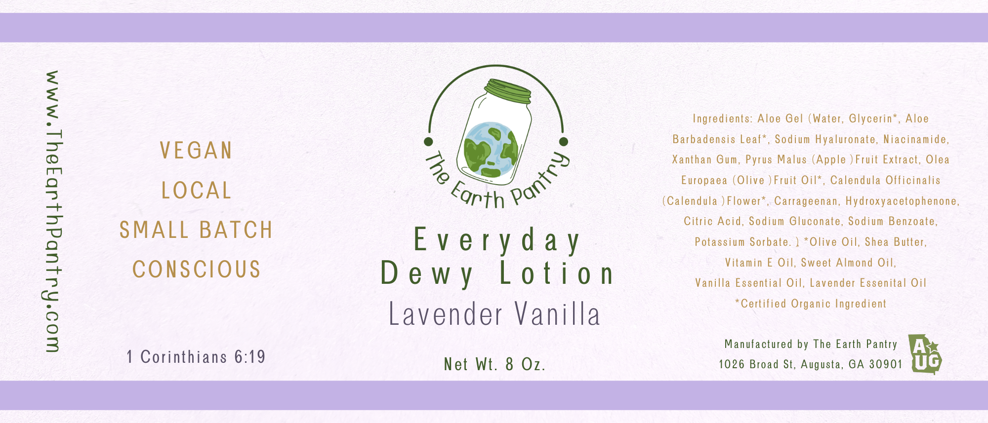 The Earth Pantry wurde ins Leben gerufen, als die Inhaberin Alexia schwere Ekzeme entwickelte und die Auswirkungen von Plastikmüll auf unsere Ozeane, unseren Boden und unsere Gesundheit entdeckte. Dies entfachte das Feuer, wirksame Produkte auf natürliche Weise zu schaffen, die auch so viel Plastikmüll wie möglich beseitigen. Die Mission von The Earth Pantry ist es, natürliche, plastikfreie und bewusste Körperpflegeprodukte und Reinigungsmittel bereitzustellen, die Menschen dazu anregen und unterstützen, sich ihres ökologischen Fußabdrucks bewusst zu werden. The Earth Pantry stellt Produkte mit starken Werten her, die auf der Liebe zu Gott und den Menschen, plastikfreier Verpackung, lokaler und ethischer Beschaffung und der Verfügbarkeit gesunder Entscheidungen für alle basieren.