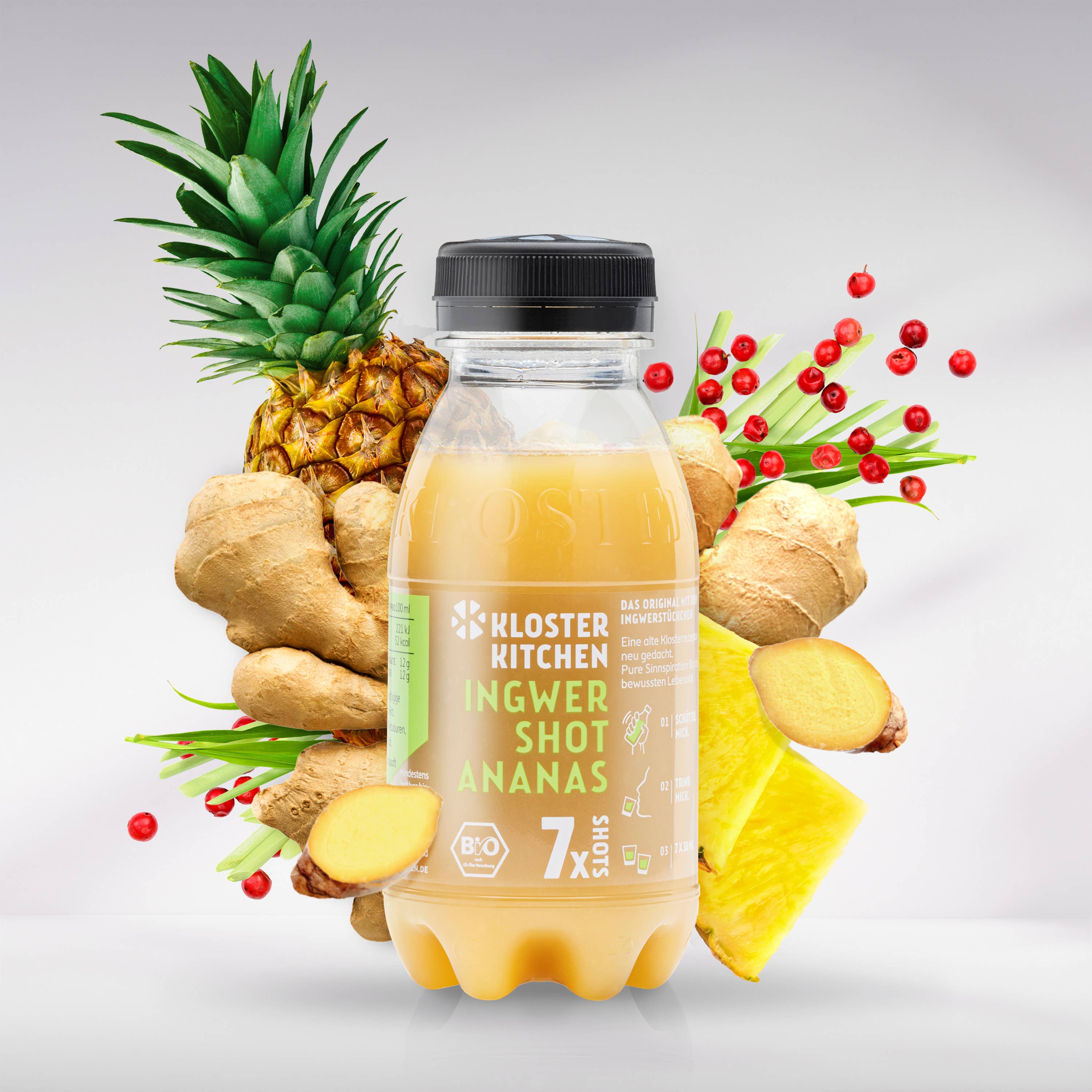 Unser Rezept für Ingwer Shots basiert auf einem alten überlieferten Rezept aus der Klosterküche. 2016 hat unser Gründer Mario damit begonnen, Ingwer Shots mit echten Ingwerstückchen in der Flasche herzustellen und zu verkaufen. So klein begonnen, ist Kloster Kitchen heute mit über 40 leidenschaftlichen Mitarbeitern zu einem echten Unternehmen geworden.