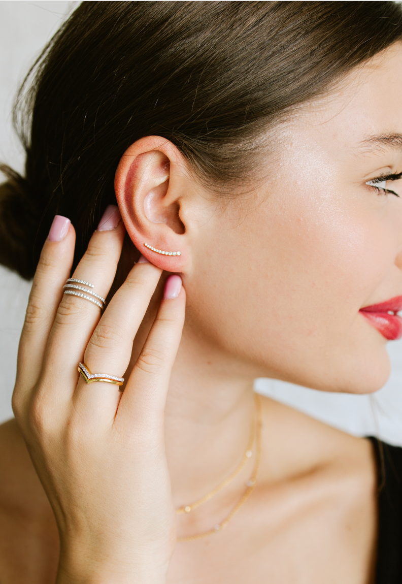 Karia Diamond befähigt Frauen mit Alltags-, maßgeschneidertem und Brautschmuck, der mit im Labor gezüchteten Diamanten aus unserem familiengeführten Unternehmen gefertigt wird. Wir bieten zugänglichen Luxus mit erstklassigem Kundenservice. Unsere Stücke stehen für innere Schönheit und Wachstum der modernen Frau. Mit jedem Kauf eines Karia Diamond unterstützen Sie Chaiim – Frauen, die Opfer von Menschenhandel sind und ihr Leben neu aufbauen. Wenn Sie einen Karia Diamond tragen, wählen Sie ethisch gezüchtete Labordiamanten und eine Mission zur Unterstützung von Frauen, die „wachsen, um zu funkeln“.