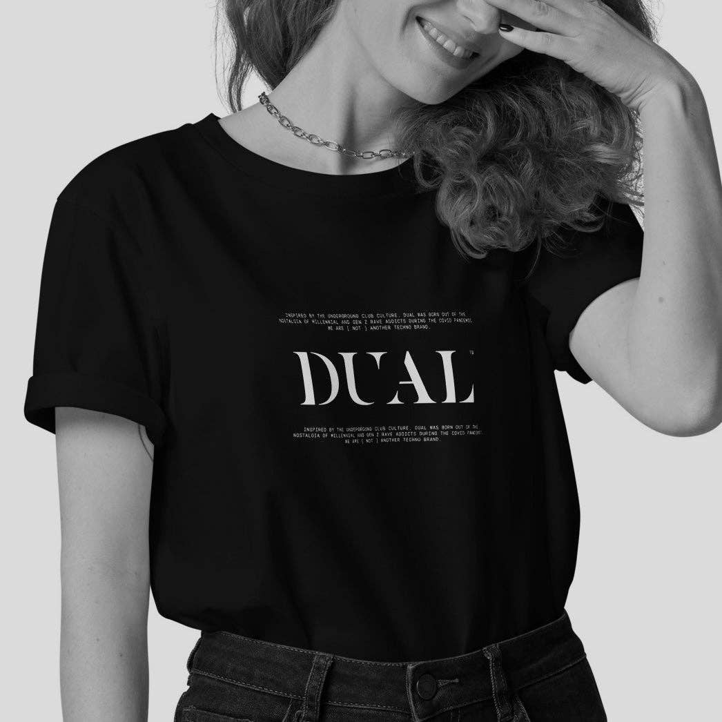 EINE TECHNO-BEWEGUNG INSPIRIERT VON DER UNDERGROUND-CLUBKULTUR ENTSTAND DUAL AUS DER NOSTALGIE DER MILLENNIALS UND GEN-Z-RAVE-SÜCHTIGEN WÄHREND DER COVID-PANDEMIE. WIR SIND [KEINE] WEITERE TECHNO-MARKE. DUAL wurde während der Pandemie 2020 gegründet und begann als Projekt, das darauf abzielte, Stigmen rund um elektronische Musik zu überwinden. Mit Sitz in Madrid und gegründet von einem Art Director und einem Technologieentwickler bei Tag — Ravern bei Nacht — war die Idee geboren, moderne Kleidung für Techno-Süchtige zu kreieren. Eine Marke, die eine Community vereint, die stolz auf ihren Lebensstil ist. Die Zukunft liegt uns am Herzen, und deshalb versuchen wir, eine bessere Zukunft zu schaffen, indem wir all unsere Anstrengungen darauf verwenden, ein ehrliches, faires und umweltfreundliches Unternehmen aufzubauen. Bessere Mode für den Planeten.