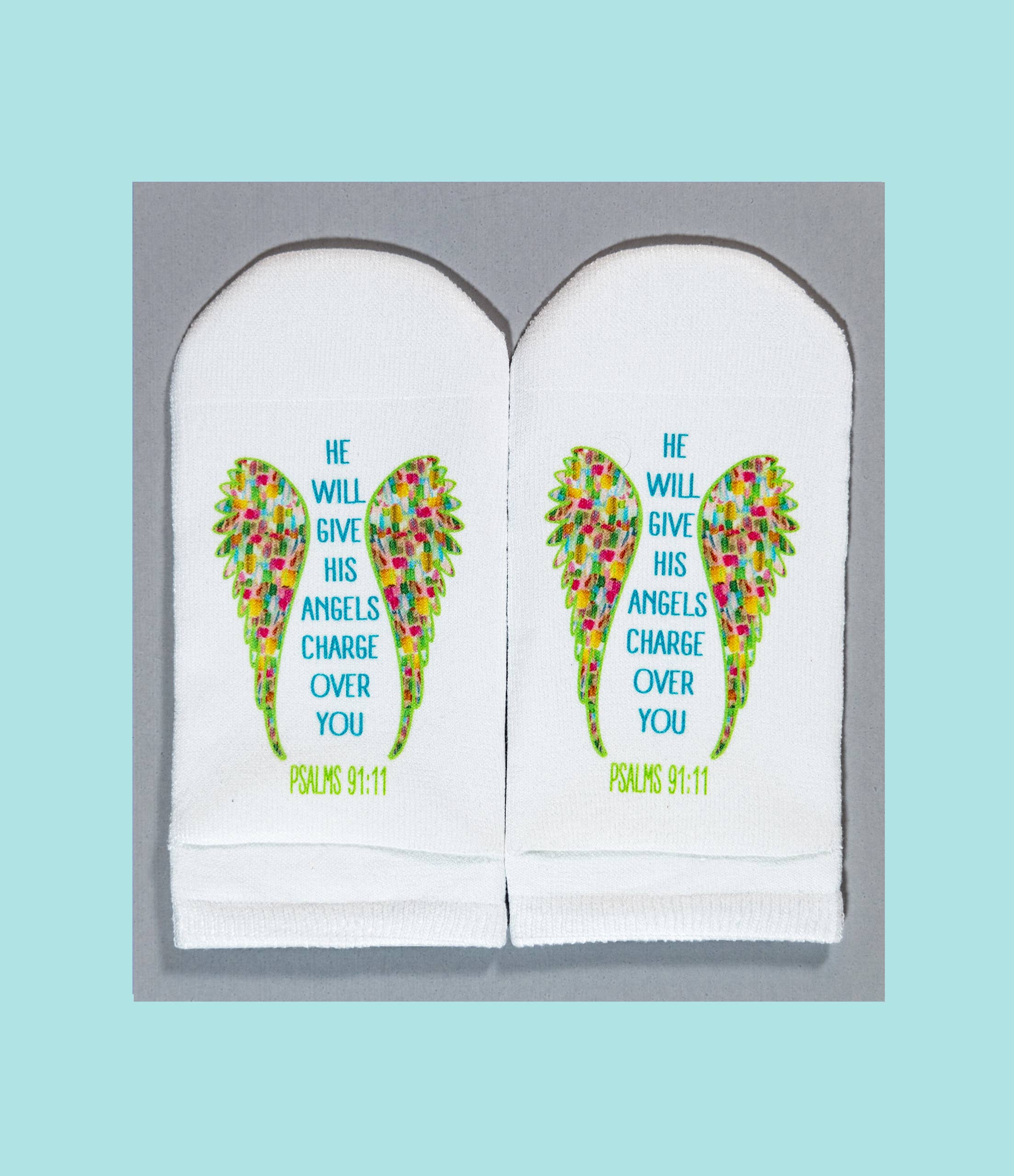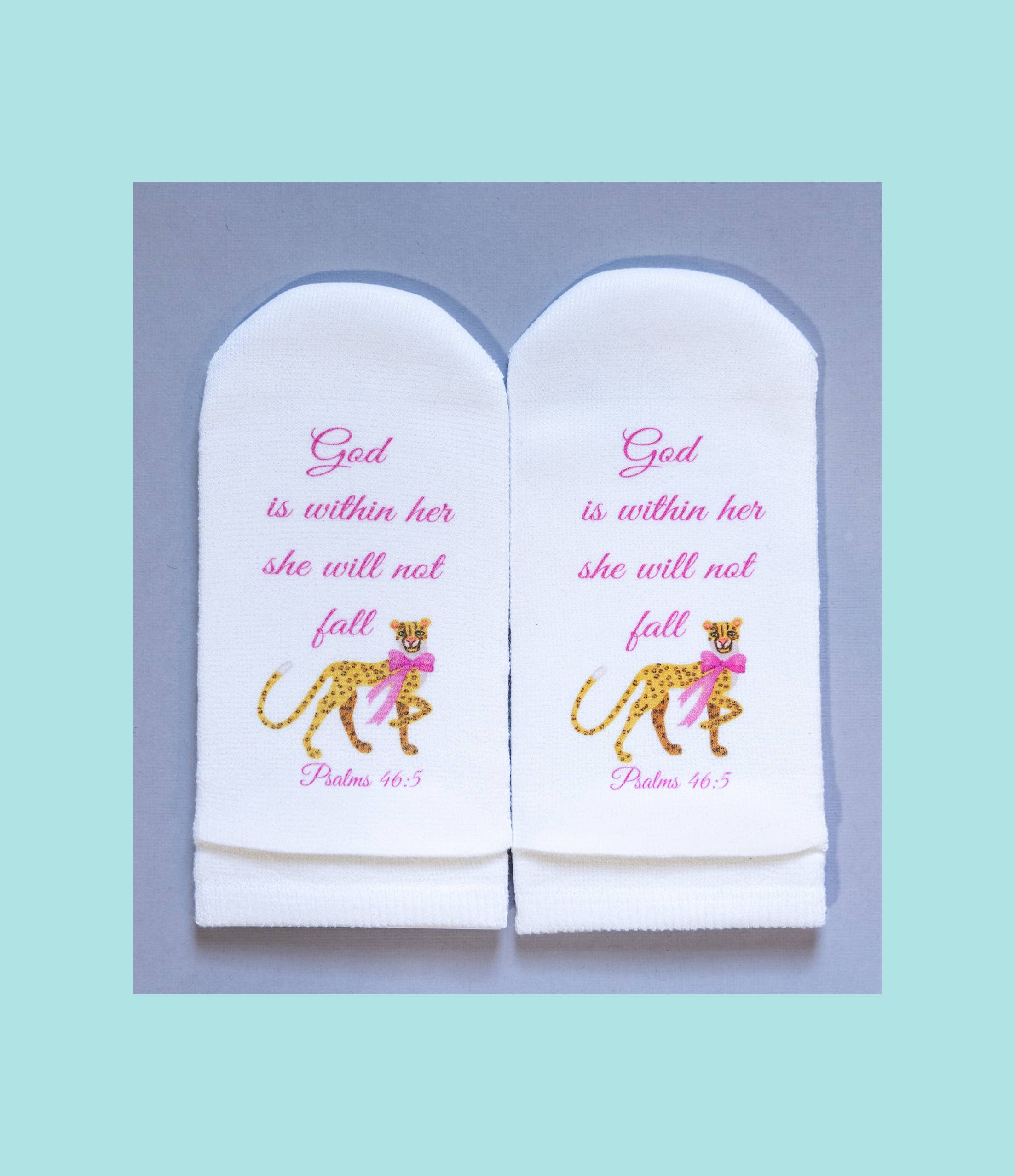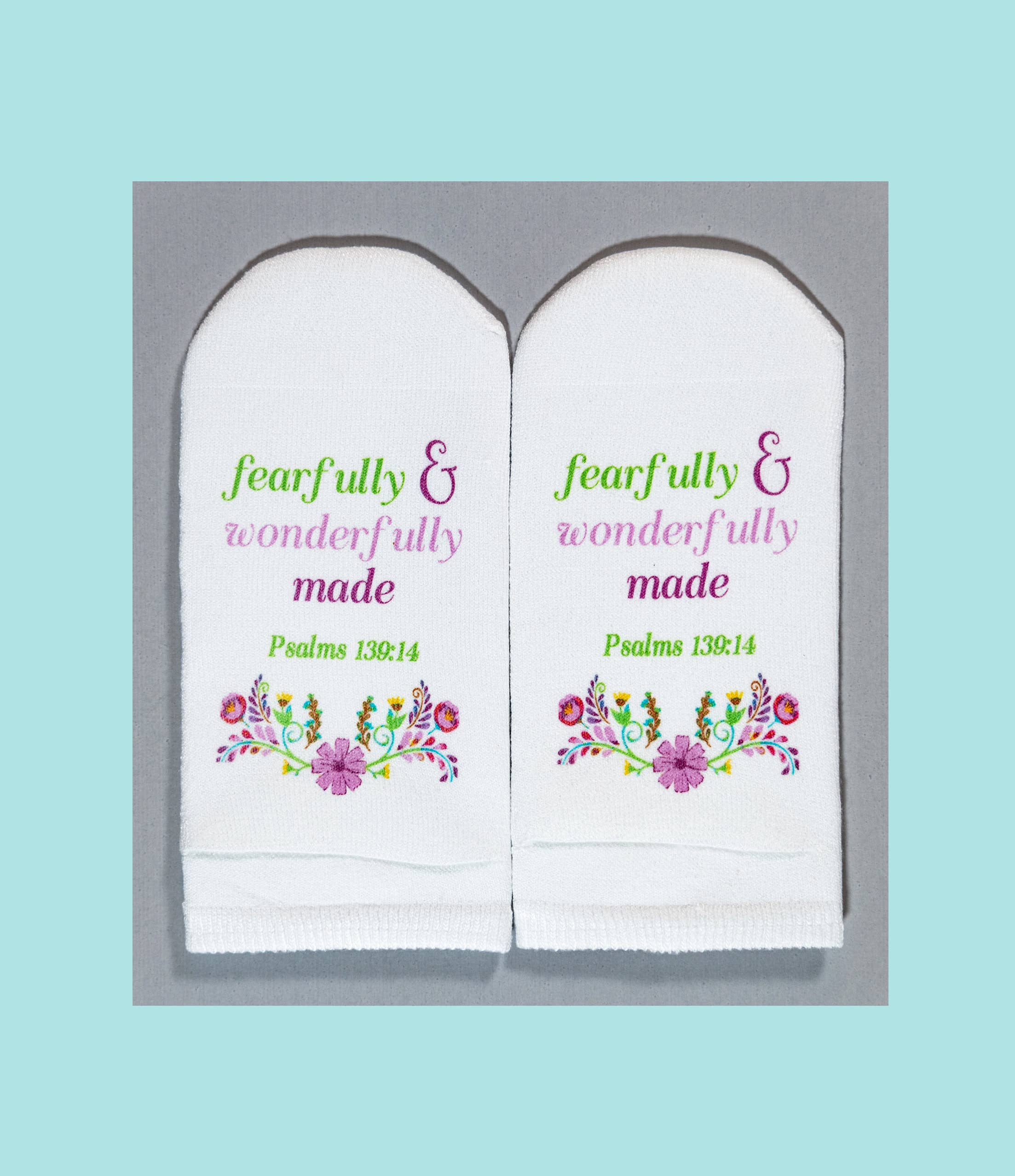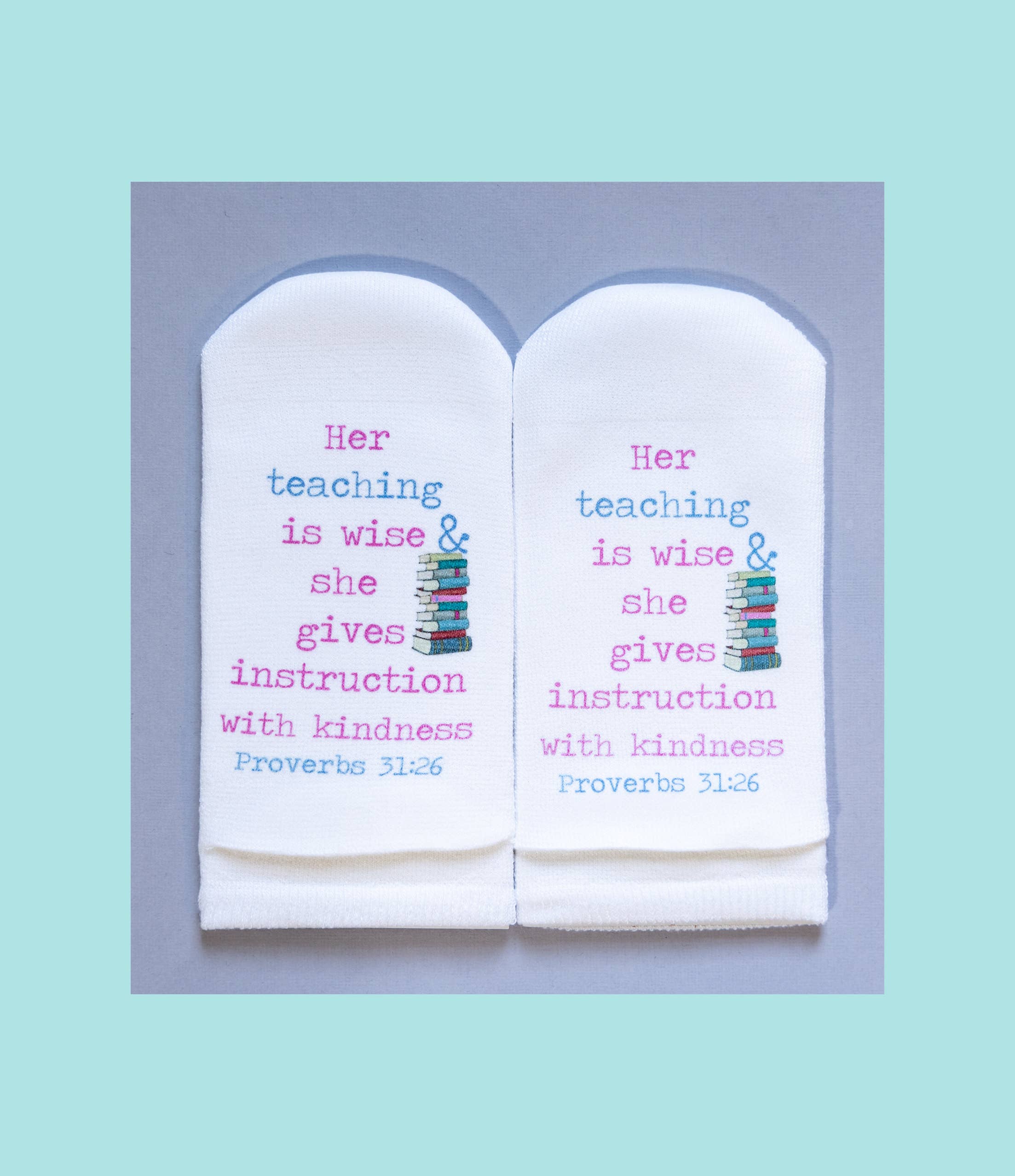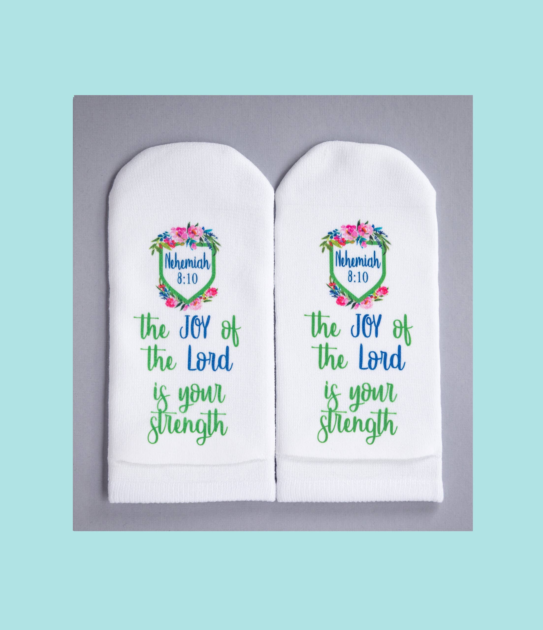 Mit einer Leidenschaft für Kreativität und Gottes Wort betrachtete ich eine Socke und fragte Gott: „Wie lege ich einen Vers auf eine Socke?“ Sobald die Idee kam, rief ich meine Freundin Jill an und sagte: „Klingt das verrückt: Was wäre, wenn ich den Vers auf den Boden legen würde und überall, wo du den ganzen Tag hingehst, würdest du auf dem Wort stehen!“