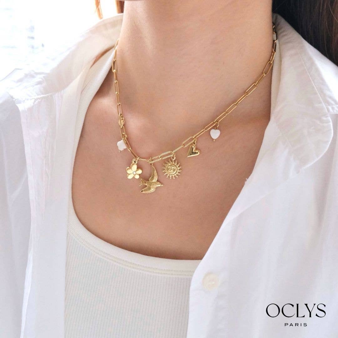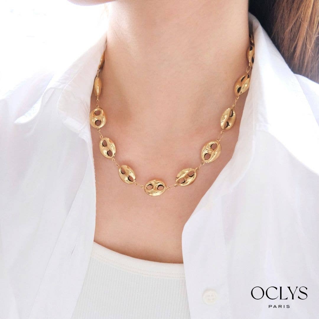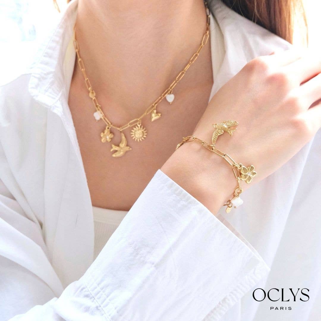 Seit 1992 verkörpert Christelle Mode, im Herzen von Paris ansässig, eine raffinierte Vision von Schmuck und Modeaccessoires durch ihre Marke Oclys. Als Großhändler begleiten wir Händler, indem wir ihnen Kollektionen anbieten, die Kreativität, Qualität und Trend vereinen, damit sie ihren Kunden einzigartige und inspirierende Schmuckstücke anbieten können. Unsere Schmuckstücke sind mehr als nur Accessoires: Sie sind ein Ausdrucksmittel für jede Frau, das ihr hilft, sich mit Eleganz und Selbstbewusstsein zu behaupten. Wir glauben, dass jedes Stück die Persönlichkeit unterstreichen und die Stärke und Einzigartigkeit der Trägerin offenbaren kann. Der Großteil unserer Kreationen wird aus Edelstahl gefertigt, der für seine Haltbarkeit und seinen Glanz bekannt ist. Wir kombinieren diesen Stahl mit verschiedenen Materialien wie Natursteinen, Kristall oder Perlen. Inspiriert von der Schönheit der Welt bieten unsere Schmuckstücke eine einzigartige Ästhetik, die es jeder Frau ermöglicht, sich abzuheben. Jede Saison bereichern etwa hundert neue Referenzen unsere Kollektionen, mit sorgfältig durchdachten Farbkombinationen und Designs, die den Trends folgen und dennoch zeitlos bleiben.