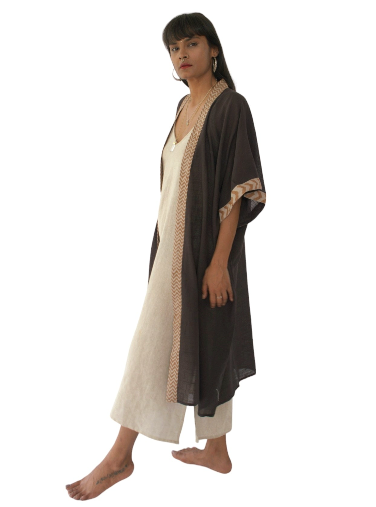 Unsere Geschichte beginnt mit einer tiefen Wertschätzung für die Kunst traditioneller Handwerkskunst und einem Engagement für nachhaltige Mode. Jedes Stück unserer Kollektion wird von erfahrenen Handwerkern sorgfältig von Hand gefertigt, die ihr Herz und ihre Seele in jeden Stich stecken. Mit jahrhundertealten Techniken und natürlichen Farbstoffen, die aus der Fülle der Erde stammen, kreieren wir Kleidungsstücke, die so einzigartig sind wie die Menschen, die sie tragen. Inspiriert vom Bohème-Geist verbinden unsere Designs die freigeistige Essenz der Vergangenheit mit zeitgenössischer Eleganz. Unsere Kleidung wird nicht nur getragen, sondern auch erlebt. Jedes Kleidungsstück erzählt eine Geschichte, von der sanften Berührung biologischer Stoffe bis hin zu den satten Farbtönen, die durch natürliche Farbstoffe entstehen. Wir begrüßen die Unvollkommenheiten und Variationen, die das Färben von Hand mit sich bringt, und feiern die Individualität und Authentizität jedes einzelnen Stücks. Unser Engagement geht über Ästhetik hinaus. Wir bemühen uns, die Umwelt zu schonen, indem wir nachhaltige Praktiken und Materialien verwenden und sicherstellen, dass unsere Kreationen einen positiven Einfluss auf die Welt haben. Jeder Stich und jede Farbe ist ein Schritt in Richtung einer achtsameren und vernetzteren Lebensweise.