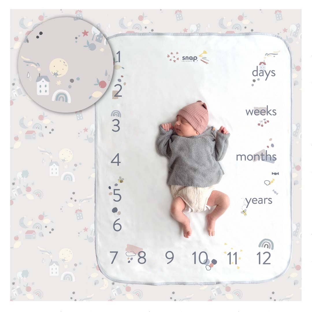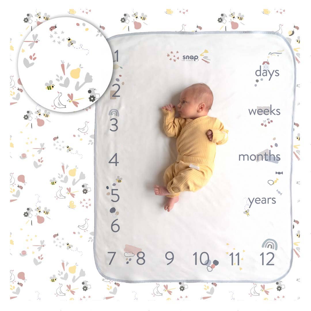 Snap the Moment ist eine doppelseitige Decke, die mit Ihrem Kind mitwächst. Auf der einen Seite können Sie das Alter des Babys markieren, die andere Seite ist eine klassische Babydecke. Pastellfarbene Muster erfreuen sowohl Babys als auch Eltern. Die Foto-Decke® eignet sich als Teil der Erstausstattung und später als Kindergarten-Decke für Ihr Kind. Die Snap the Moment Foto-Decke® besteht aus weicher Baumwolle, die besonders sanft zur empfindlichen Haut Ihres Kindes ist. Für höchste Qualität und Sicherheit verwenden wir die besten Stoffe, zertifiziert nach STANDARD 100 by OEKO-TEX® Produktklasse I. Alle Details werden sorgfältig beachtet, daher werden unsere Decken komplett in Polen gefertigt. Unsere Decken werden auf allen Verarbeitungsebenen getestet, um sicherzustellen, dass sie den höchsten Qualitätsstandards entsprechen. Die Snap the Moment Foto-Decke® wird in einer maßgeschneiderten, ökologischen Verpackung geliefert. Zum Set gehören 2 Bänder zum Markieren des Alters sowie limitierte Fotokarten.