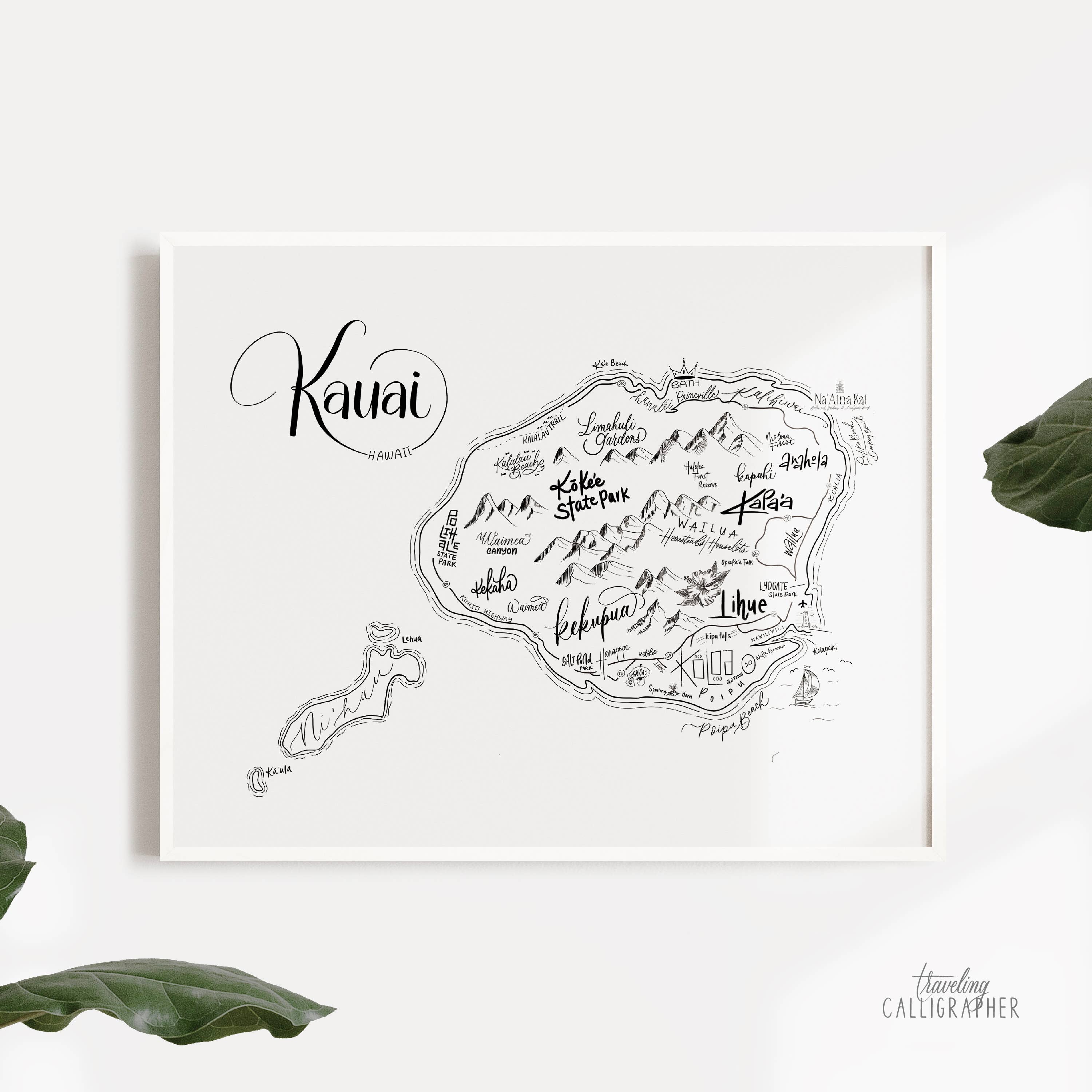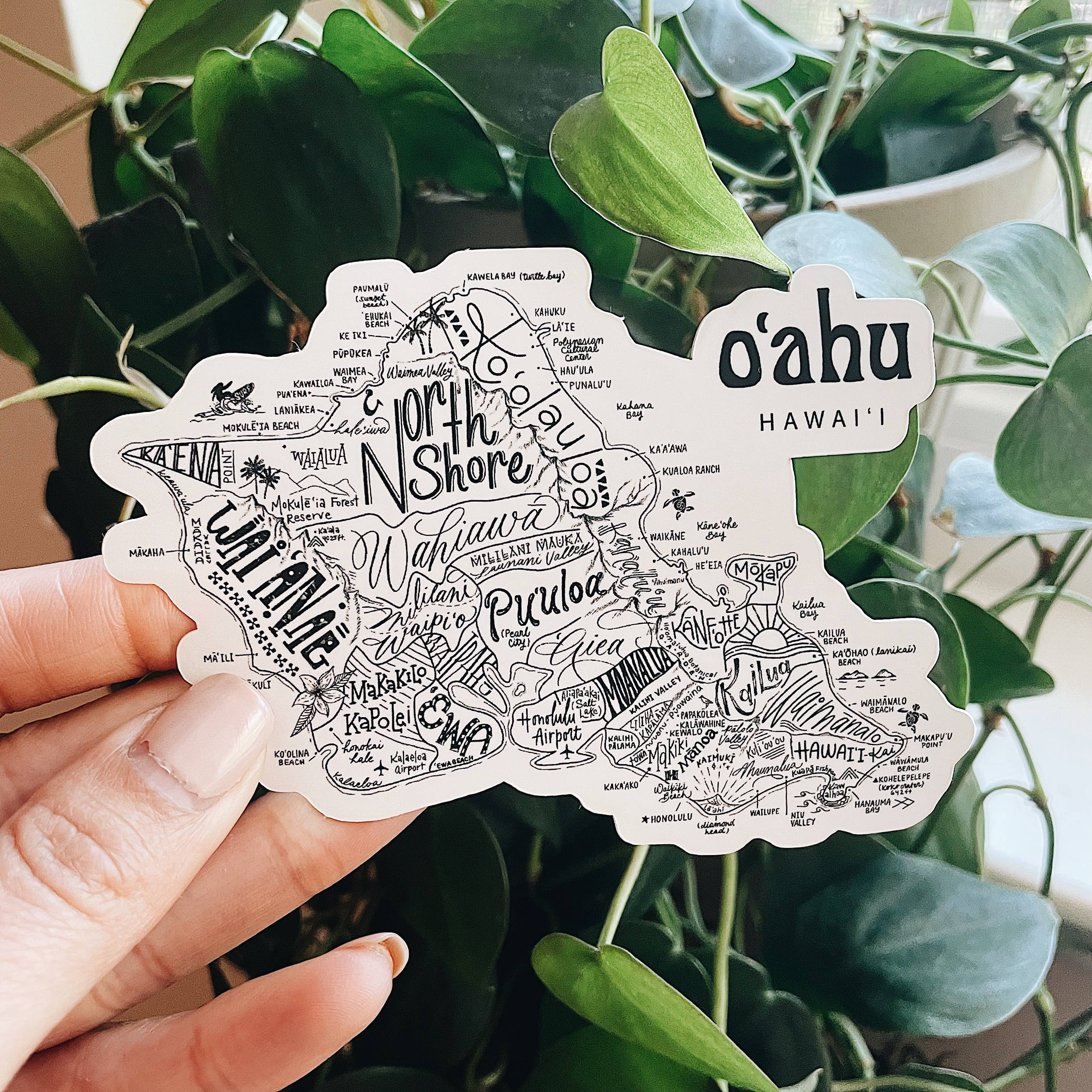 Nachbarschaftskarte von Oahu, Hawaii, handbeschriftet und illustriert von Queeny Lu von Traveling Calligrapher. DETAILS DRUCKEN • Alle Drucke sind auf hochwertigem mattem Papier gedruckt, 89 g/m2, 60-Pfund-Umschlag • Alle Drucke werden mit Archivtinte gedruckt, um ein Ausbleichen im Laufe der Zeit zu verhindern STANDARDGRÖSSEN (branchenübliche Größen zum einfachen Einrahmen)