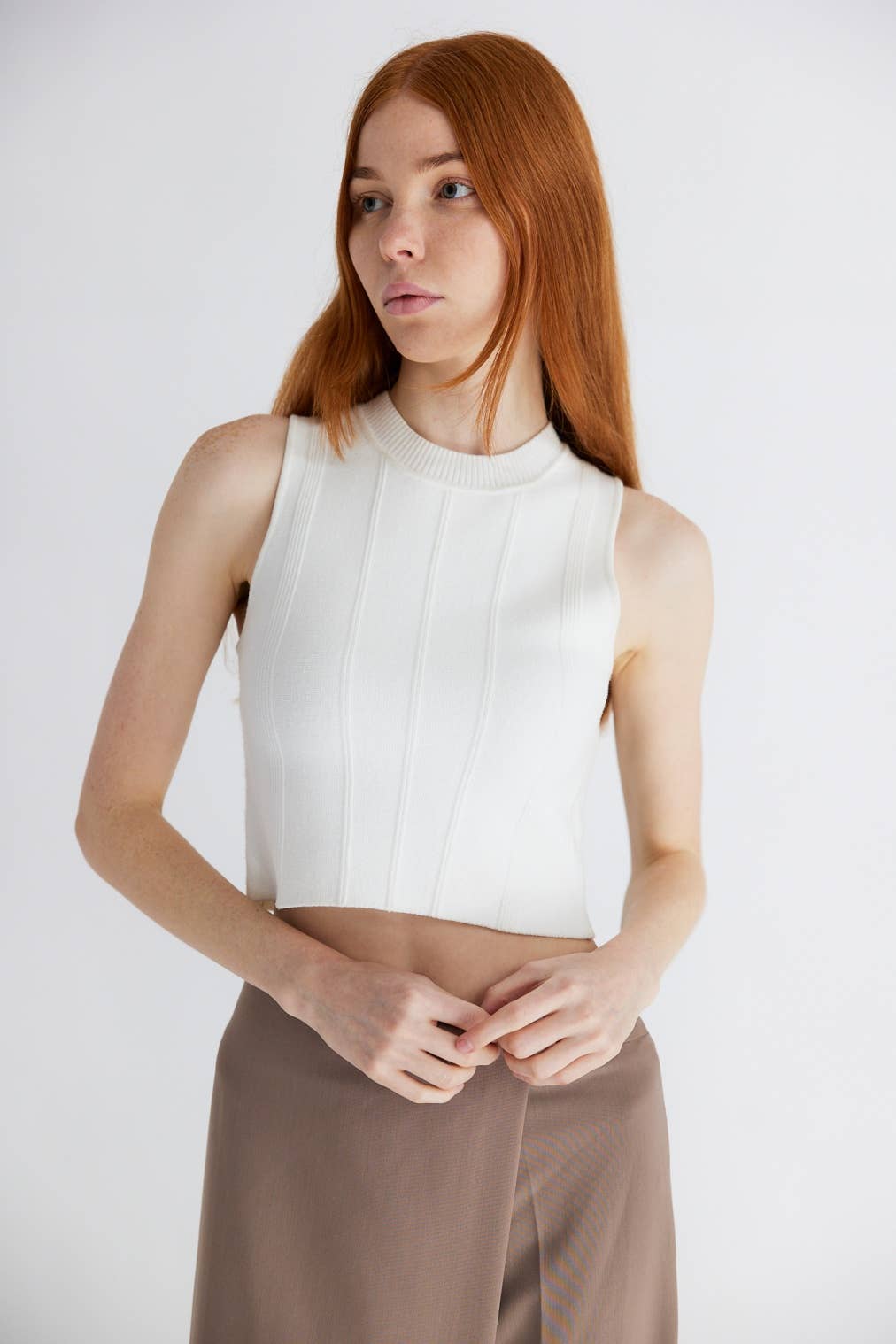 Das Nadine Top ist ein tailliertes, ärmelloses Oberteil mit Rundhalsausschnitt und geripptem Stoff. Style Nummer: TM1559 60% Viskose, 40% Nylon