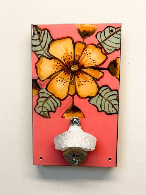 Neuer Flaschenöffner mit Meerjungfrau-Wandhalterung. Sweet Art Attack vereint die Talente des Ehepaar Ellen und Bret Hammen. Spezialisiert auf lustige und einzigartige handgefertigte funktionale Kunst aus den USA. Kommt mit den hängenden Beschlägen. Dieser maßgefertigte Flaschenöffner an der Wand passt perfekt zu einem Craft Beer mit künstlerischem Charme. Das Wandschild ist nicht nur ein praktisches Küchenwerkzeug, es trägt auch Originalkunst, die eine Lieblingsstadt und einen Lieblingsstaat feiert. Handgefertigt in Connecticut.