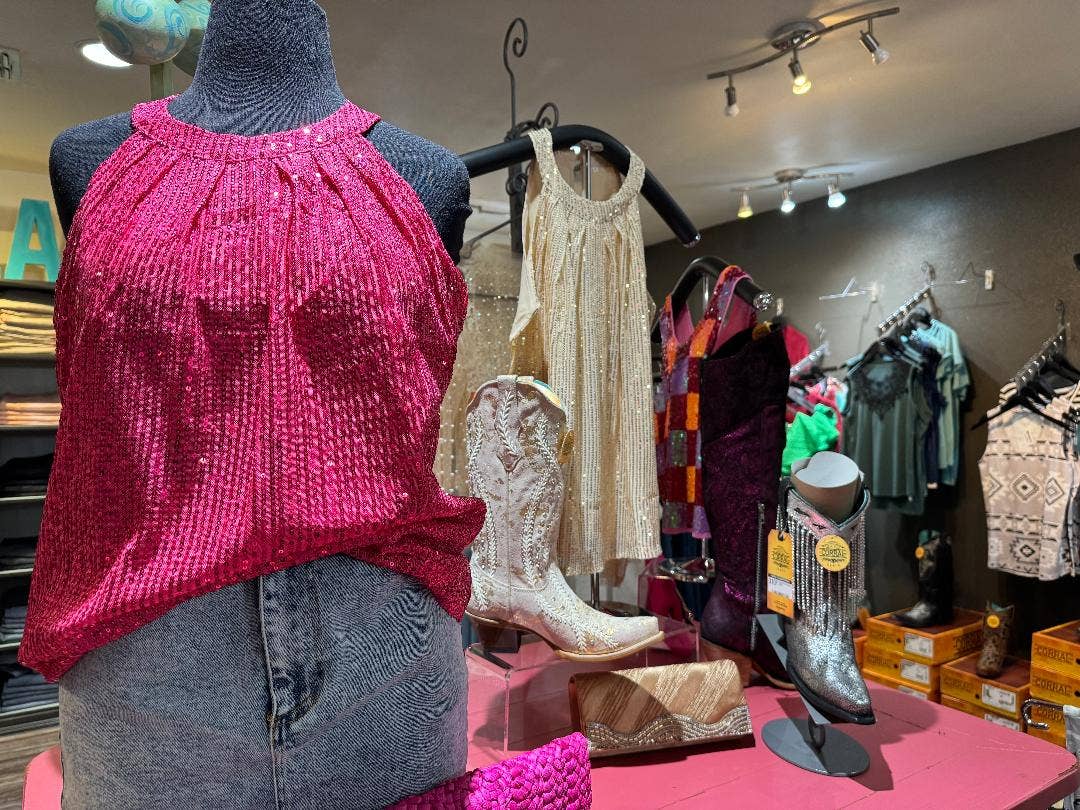 Wir haben ein wunderschönes Sommer/Barbie-Display mit diesen Oberteilen in Kombination mit funkelnden Corral-Stiefeln erstellt.