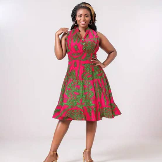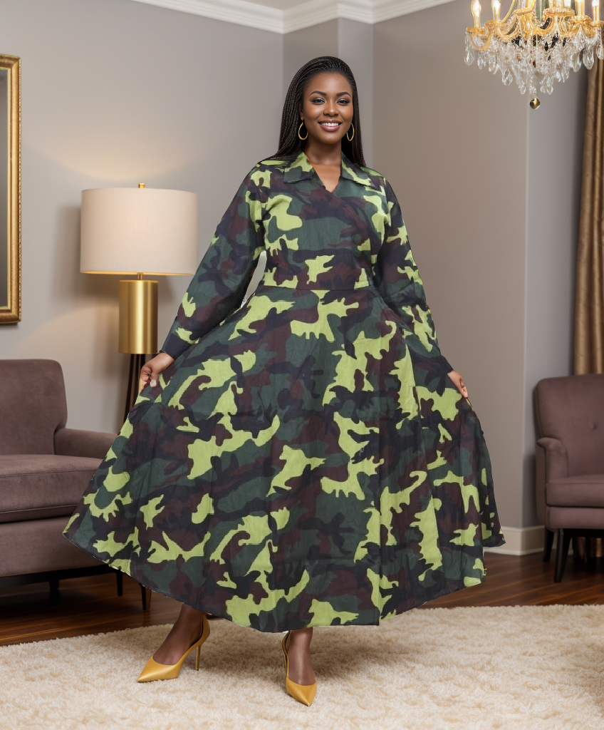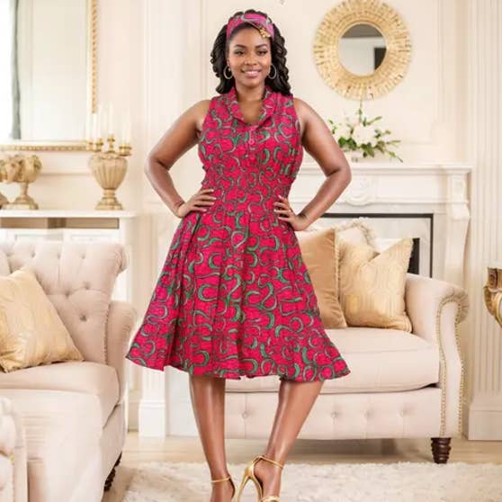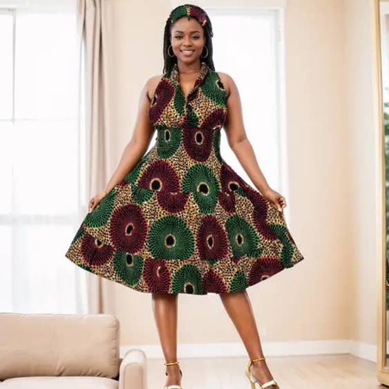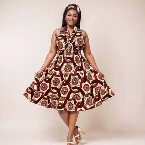 Schulterfreies, sommerliches, modisches, atemberaubendes Kleid, das bei Ihren Kunden sicherlich ein Hit sein wird. Eine perfekte Passform für eine Königin. Merkmale: 100% Wax Cotton Einheitsgröße passt bis zu 3X Afrikanischer Druck Schulterfrei Kommt mit passendem Kopftuch Entworfen in den USA Importiert Maschinenwaschbar Stil - 7556-465