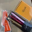 Ich kann es kaum erwarten, diese Artikel am Samstag im Buchladen auszustellen, sie sind alle so schön. Der Heimatstadt-Aufkleber ist einfach perfekt, und ich denke, meine Kleinstadtgemeinschaft wird ihn lieben! Und diese Lesetagebücher? Perfekt. Alles war makellos verpackt, und die handgeschriebene Dankeskarte war eine so nette Geste. Danke!