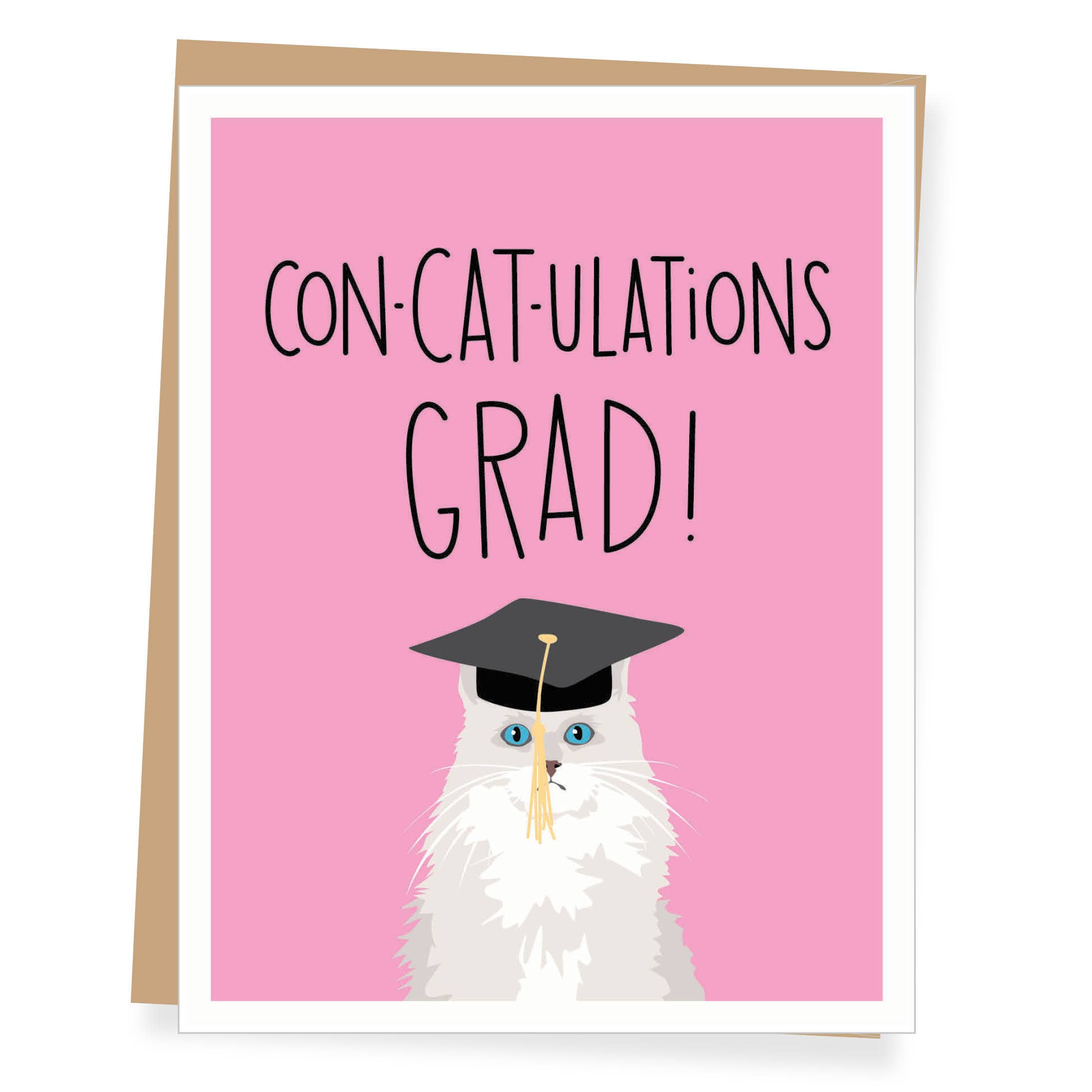Grußkarten im A2-Format (4,25 x 5,5 Zoll gefaltet). Innengruß: „HERZLICHEN GLÜCKWUNSCH ABSOLVENT!“ Gedruckt auf hochwertigem Recyclingpapier. Gepaart mit recycelten braunen Kraftumschlägen. Verpackt in Cello.