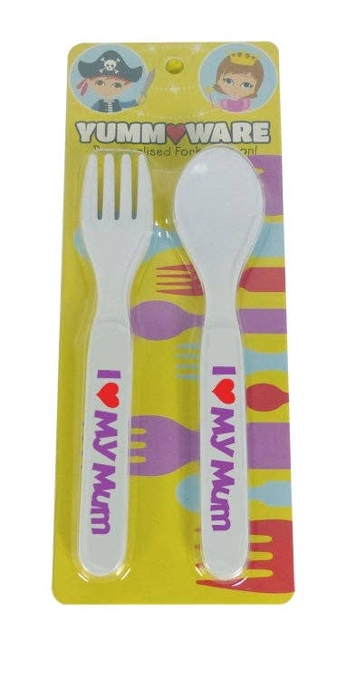 Besteckset für Kinder mit Gabel und Löffel. Gabel und Löffel sind beide 13,5 cm groß. Spülmaschinengeeignet. Nicht mikrowellengeeignet.