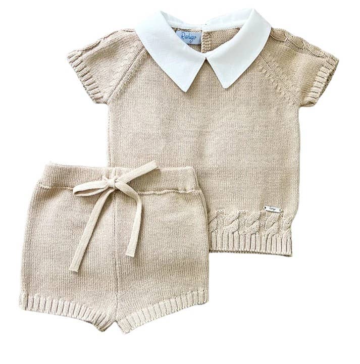 24185 Jungen-Set: Strick-Poloshirt mit Kragen und Shorts im Großhandel