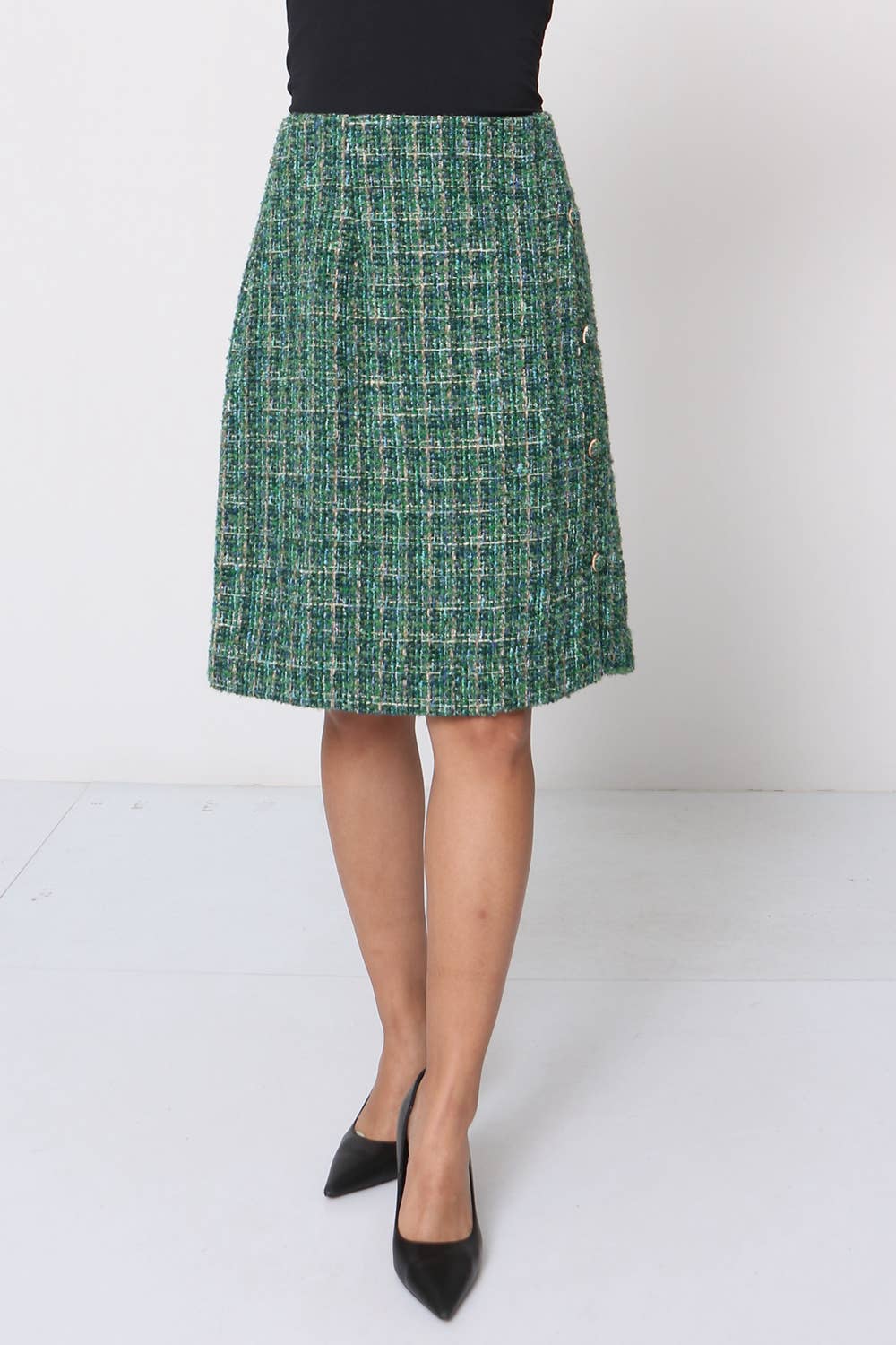 Faltenrock mit einem braunen Gürtel inklusive. Dieses super trendige Teil ist vielseitig kombinierbar – wie unser Model trägt man ihn zu weißen Sneakern oder mit Stiefeln für einen schickeren Look. Das Model ist 170 cm groß und trägt Größe S, was einer 36 entspricht.