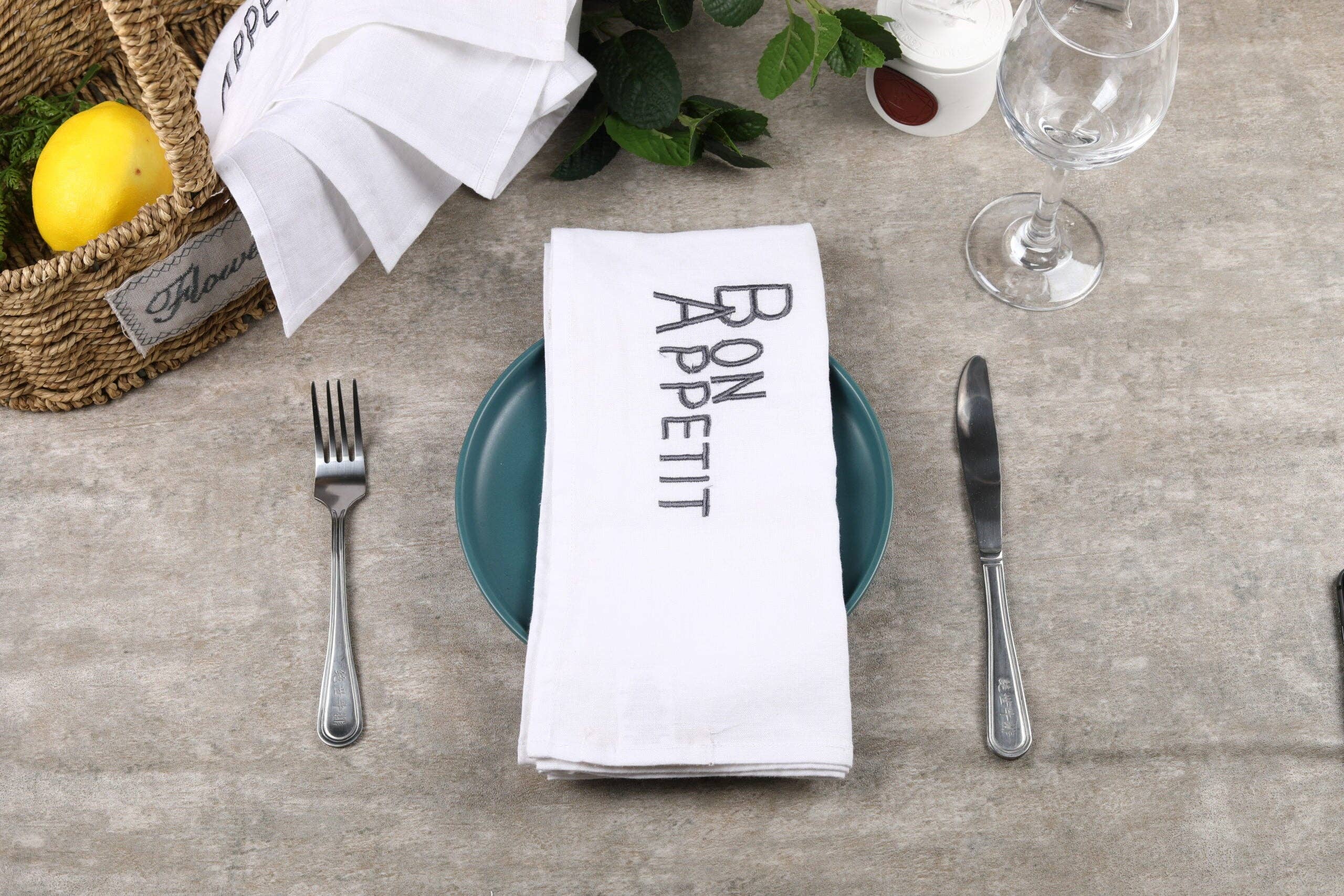 „Verbessern Sie Ihr kulinarisches Erlebnis mit unserer eleganten Rüschenserviette. Diese dekorativen Servietten sind aus hochwertigem Stoff gefertigt und verfügen über zarte Rüschen, die jeder Tischdekoration einen Hauch von Raffinesse verleihen. Sie eignen sich perfekt für Hochzeiten, Partys oder den täglichen Gebrauch und verbinden Stil mit Funktionalität für unvergessliche kulinarische Anlässe.“ Innendurchmesser 23" x 23", Netzgewebe aus Leinen, dazu 2 Zoll Rüsche. Set aus vier Teilen