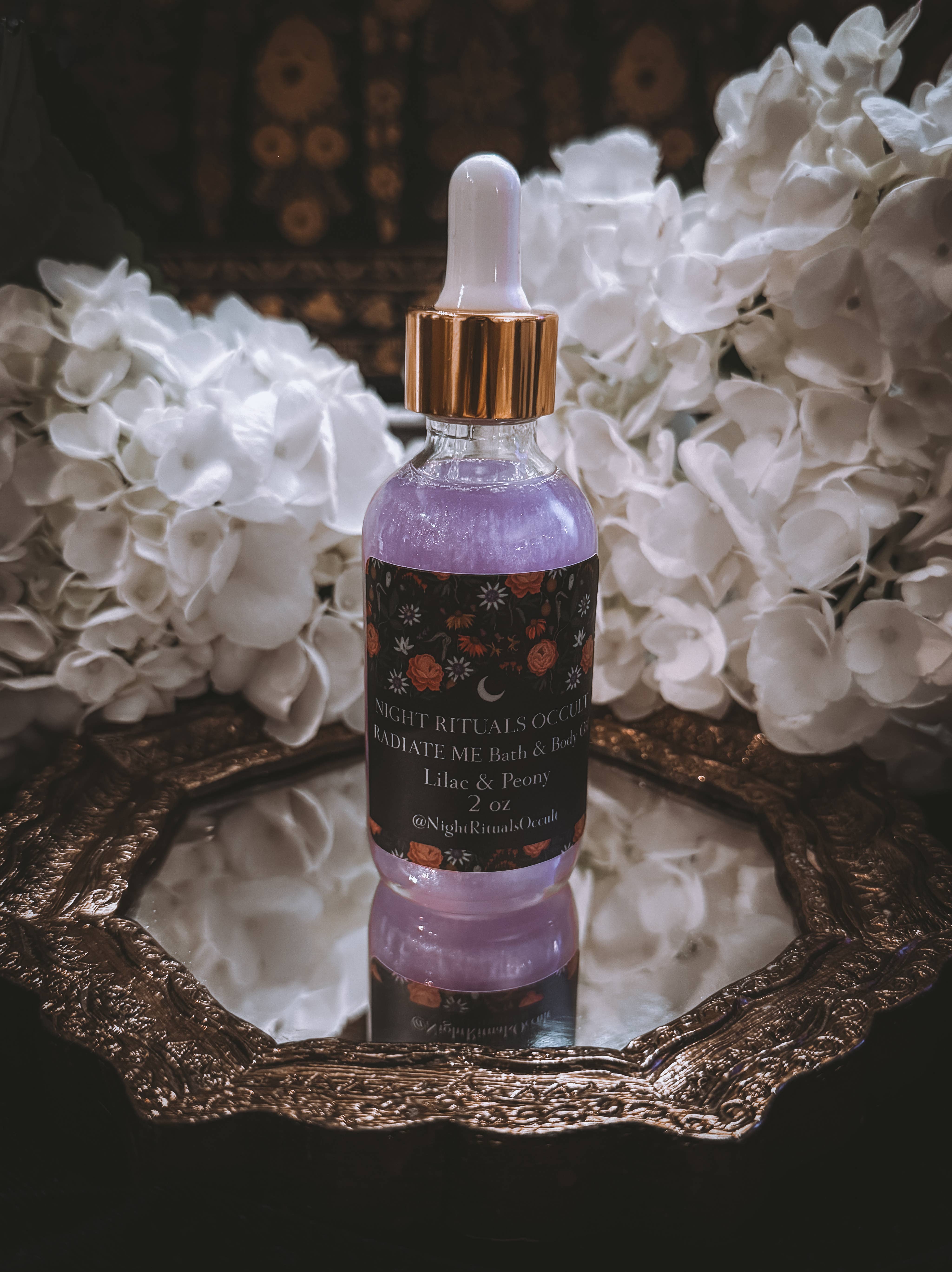 Jedes 57-ml-Glasfläschchen ist mit einer Pipette für eine präzise Dosierung ausgestattet. Dieses Basisöl besteht aus reinem Kokosöl, gemischt mit Mondblumen-Nektar und Rosenöl. Im Öl befinden sich liebevoll eingelegte rote und rosa Rosenblätter. Es kann direkt auf die Haut aufgetragen werden als natürliche Lotion und Parfüm oder dem Badewasser hinzugefügt werden. Außerdem kann es Pflegeprodukten wie Lotionen und Balsamen beigemischt werden. Vor Gebrauch gut schütteln! *Tester sind erhältlich und tragen einen goldenen TESTER-Aufkleber auf dem Etikett.*