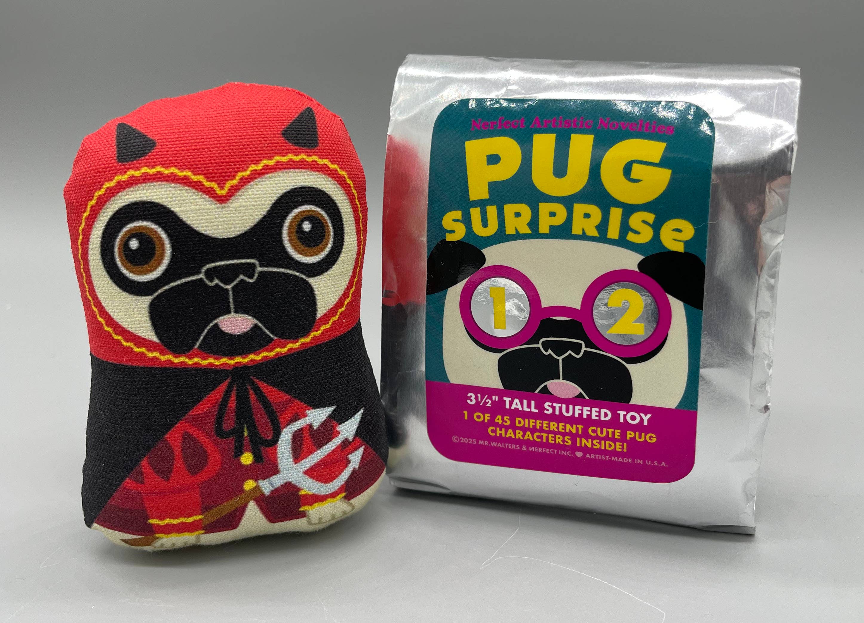 Dieser Nerfect Mops-Gnom-Plüsch ist 4" breit, 9" hoch und 2" tief. Die Kunstwerke auf diesem Spielzeug werden mit wasserbasierten Pigmenttinten auf 100% Baumwolle, Leinen-Canvas, gedruckt. Es ist mit 100% Polyesterfaser gefüllt. Diese Plüschtiere werden in begrenzter Stückzahl von den Händen des alten Herrn Walters hergestellt. Aufgrund der handgefertigten Natur dieser Artikel kann es zu leichten Unterschieden zwischen den einzelnen Figuren kommen. Diese kleinen Unterschiede entstehen, wenn das Spielzeug gestopft und zugenäht wird. Bitte beachten Sie, dass dieser Artikel nicht für die unbeaufsichtigte Verwendung durch Kinder unter 3 Jahren oder tierische Freunde konzipiert wurde. Wenn Sie Fragen zu diesem Spielzeug haben, können Sie mich gerne kontaktieren. ©2025 Mr. Walters & Nerfect Artistic Novelties