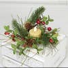 Größe: 2-1/4" d (Mitte) Material: Blumen/Kunststoff Ein roter Weihnachtskugel-Kerzenring ist ein dekoratives Weihnachtsaccessoire, das typischerweise verwendet wird, um Kerzen oder Kerzenhalter während der Weihnachtszeit zu schmücken.