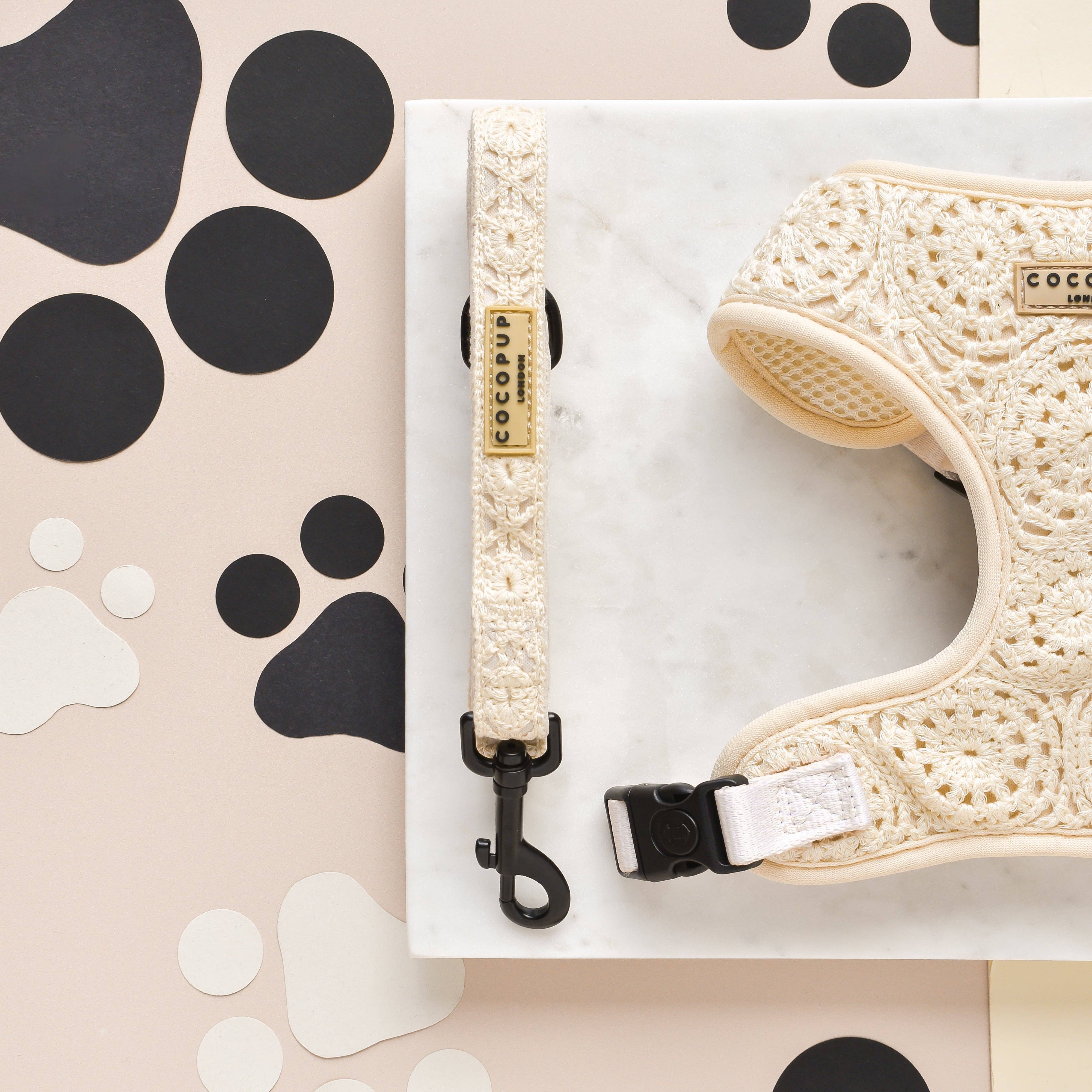 Stellen Sie sicher, dass Ihr Welpe genauso schick aussieht wie Sie in unserer Ivory Tort Kollektion. Edel? Tick! Schick? Tick! Koordinieren Sie mit Ihrem Welpen? Doppelter Tick! Was könnte man mehr verlangen? Gepolsterter Neoprengriff für zusätzlichen Komfort Schwarzer Clip mit Drehgelenk zur einfachen Befestigung des Kragens Zusätzlicher D-Ring an der Unterseite zum Tragen der Kotasche Abmessungen = 152 cm x 2 cm
