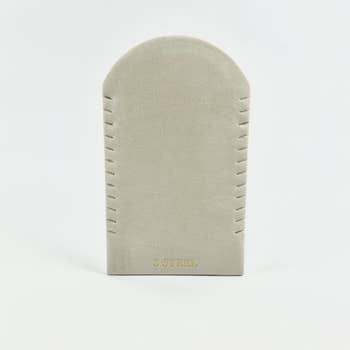 Dieser Schmuckständer aus Holz ist sowohl elegant als auch funktional. Hergestellt aus hellem Naturholz, besteht er aus drei vertikalen Paneelen mit Schlitzen, die perfekt zum Aufhängen von Ohrringen oder Anhängern geeignet sind. Vor diesen Paneelen befinden sich Reihen kleiner horizontaler Schlitze, die ideal für Ringe sind, und rechteckige Einkerbungen können Armbänder oder Uhren aufnehmen. Darunter sind schmale Rillen, die wahrscheinlich dazu gedacht sind, Stifte oder ähnliche Gegenstände zu halten. Sein einfaches, aber effektives Design hebt den Schmuck hervor, ohne ihn zu überstrahlen, was ihn zu einer attraktiven Wahl für die Präsentation von Schmuck in einem Geschäft macht. Zusammensetzung: Holz - 80% / Sonstiges - 20%