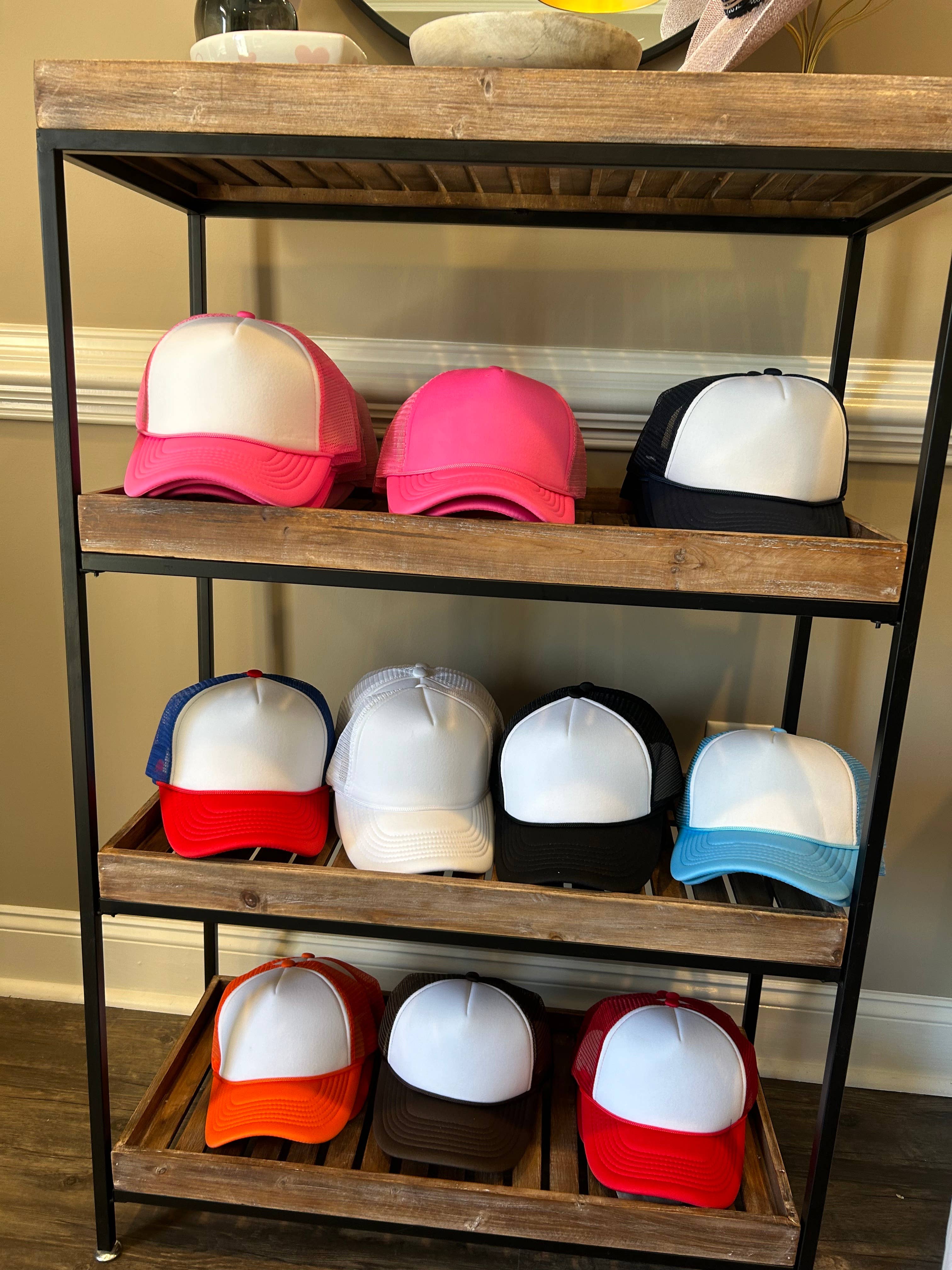 Buck Wholesale Schlichte Schaumstoff-Trucker-Caps mit Netzrückseite, mittleres Profil (44 Farben)