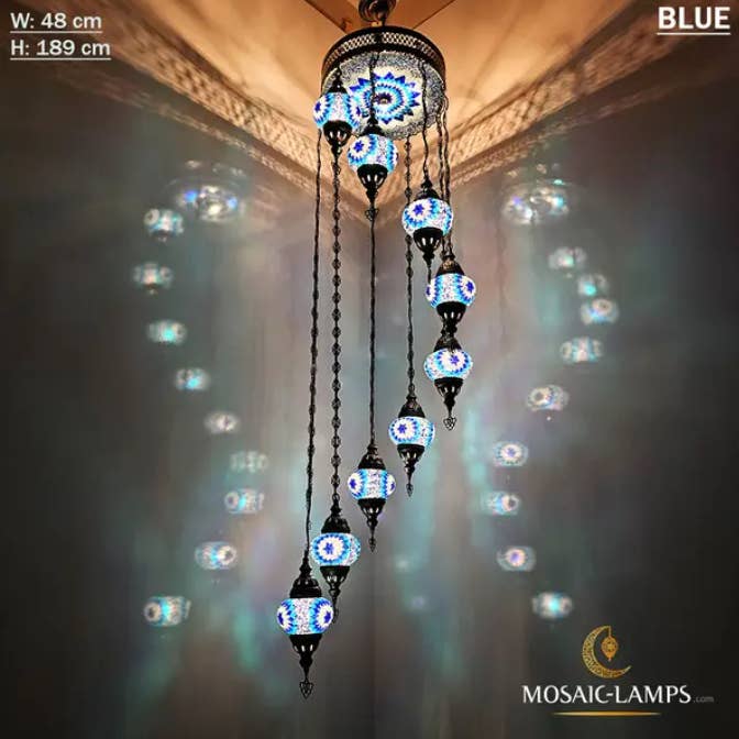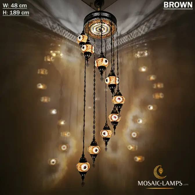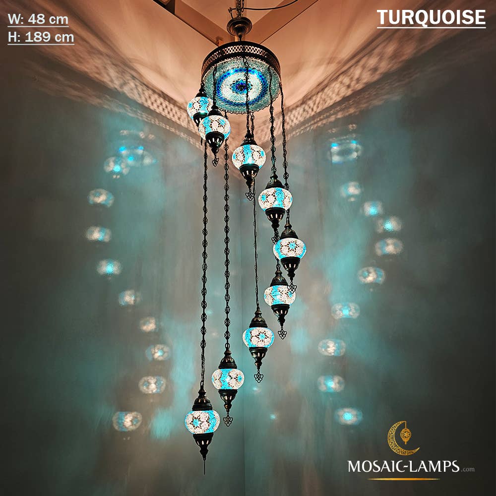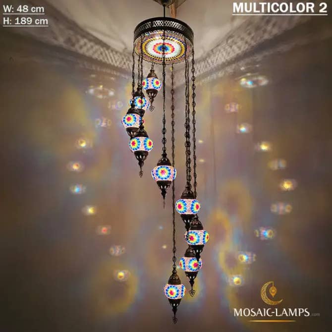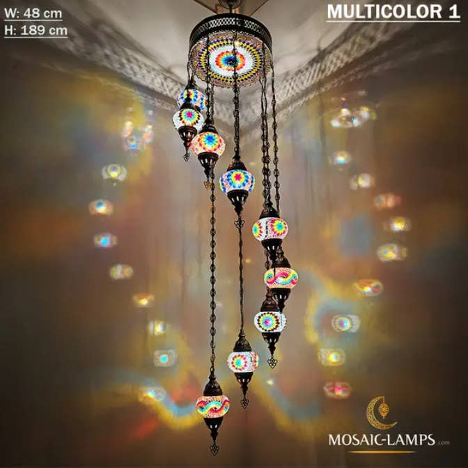 9+1 türkische Kronleuchter mit gemischtem Globusmosaik, Mosaikkreis-Beleuchtungssets mit gemischten Siedlungen, Hängelampen für das Wohnzimmer, Schlafzimmerlicht, buntes Licht. 🎨 Spezifikationen: ✔️ Materialien: - Metall: Bronzefarbe - Glas: Handgemachtes Mosaikglas - Globus: 9 Stück mittelgroßer Globus (NO 2) +35 cm obere Abdeckung aus Mosaik-Plexiglas ✔️ Messung: Breite (cm): 49 cm (19,3 Zoll) Höhe (cm): 103 cm (40,5 Zoll) Tiefe: 49 cm (19,3 Zoll) Gewicht (gr): 6.800 gr ✔️ WATT: maximal 60 W ✔️ Lampentyp: E12 oder E14 ✔️ E14-Lampenfassung 220 V für Großbritannien, EU, AU, UNIVERSAL ✔️ E12 Lampenfassung 110V für US, CAN ✔️ Handgemachte Globen ✔️ Verkabelung: CE, TÜV-Qualitätszertifikat ✔️ Hergestellt in der Türkei ✔️ Glühbirnen nicht im Lieferumfang enthalten Montage der Lampe: - Unsere Lampe hat oben eine Aufhängeöse.