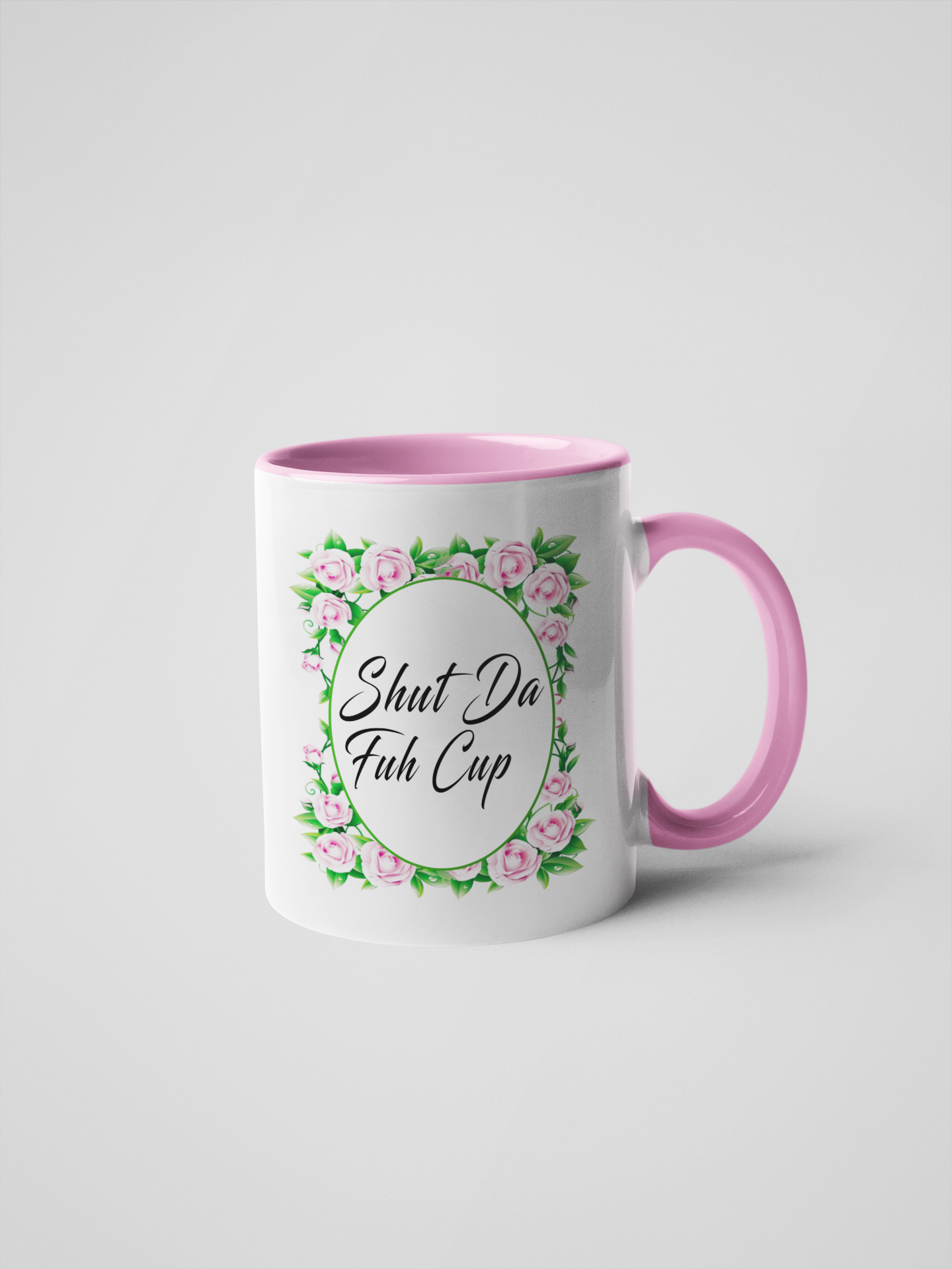 Good Morning Fuck Face Kaffeetasse florales Muster Erhältlich in Weiß/Weiß, Weiß/Schwarz, Weiß/Grün, Weiß/Pink und Weiß/Gelb. Erhältlich in 11 Unzen und 15 Unzen. Keramik-Becher Spülmaschinenfest Mikrowellenfest