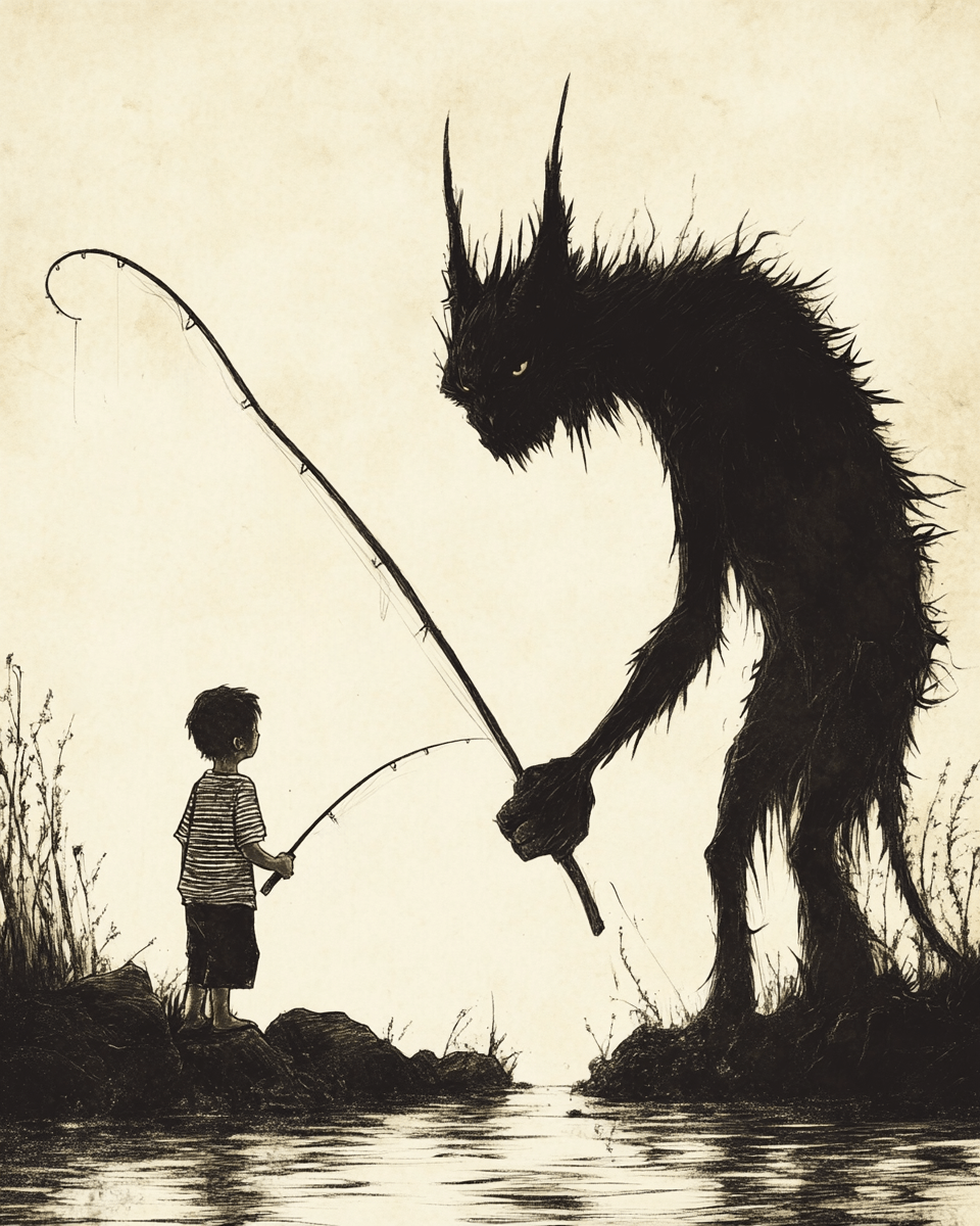 Chupacabra Fishing — Mythical Beasts Wandkunstdrucke — 8″ x10″ Kunstwerk für 11″ x14″ Rahmen
