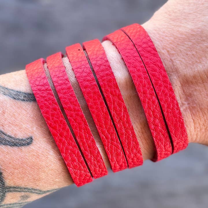 Unser Armband aus gespaltenem Leder ist ein zeitloses Accessoire, das für den täglichen Gebrauch entworfen wurde. Handgefertigt aus ethisch bezogenem Leder, ist dieses Armband leicht, flexibel und bequem, was es einfach macht, es allein oder in Kombination mit anderen Favoriten zu tragen. Die einfache Silhouette und die reiche Textur verleihen ihm einen vielseitigen Look, der das ganze Jahr über funktioniert und eine breite Kundschaft anspricht. Perfekt zum Verschenken oder für den persönlichen Gebrauch, verleiht dieses Armband mühelos Stil, ohne sperrig oder schwer zu wirken. Details: Ethisch bezogenes weiches Leder Leicht und bequem Flexibler Armbandstil für einfaches Tragen Zeitloses Design In kleinen Chargen in North Carolina hergestellt 20 cm Länge passt bequem für Handgelenkgrößen bis zu 19 cm Druckknopfverschluss