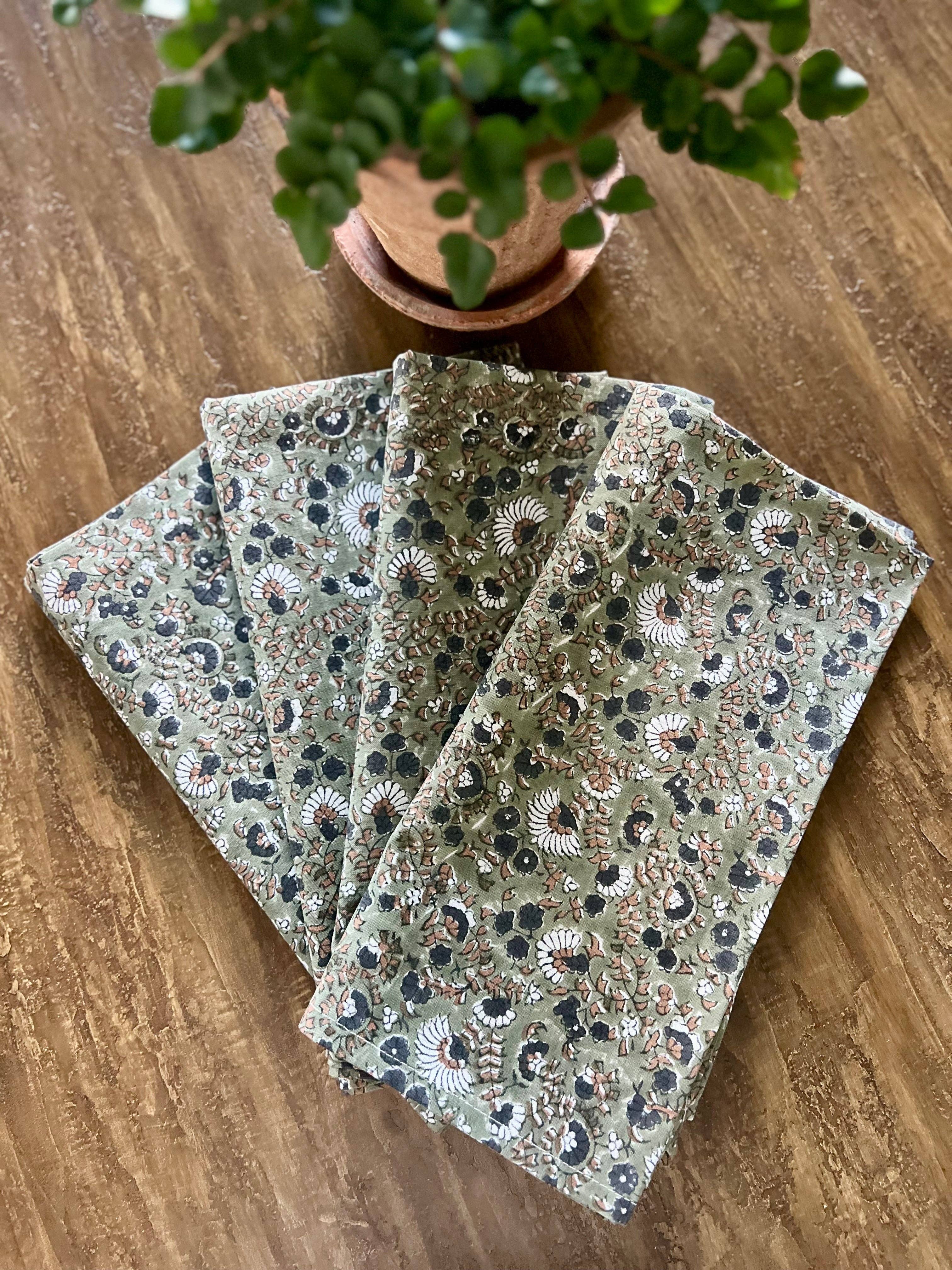 Lebhafte Blumen in olivgrüner Tischdecke im Großhandel