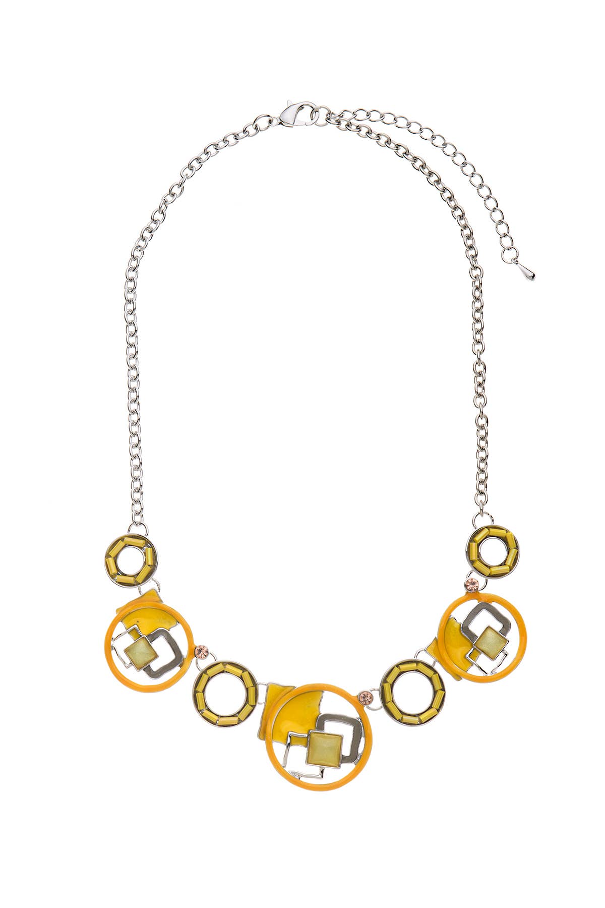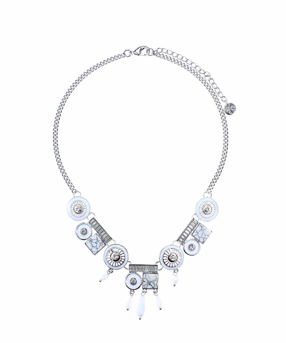 Emaillierte Fantasy-Halskette aus silbernem Metall mit Strasssteinen — verstellbare Kette aus Edelstahl Entdecken Sie Eleganz mit unserer Fantasy-Halskette, die silbernes Metall, zarte Emaillierung und funkelnde Strasssteine kombiniert. Sein schickes Design passt zu jedem Anlass. Die verstellbare Edelstahlkette sorgt für Komfort und Haltbarkeit. Pflegeleicht: Wasser und Chemikalien vermeiden, vorsichtig mit einem weichen Tuch reinigen (Hinweis: Farbabweichungen können aufgrund von Licht- und Monitorunterschieden auftreten.) Länge: 43+8 cm (verlängerbar) Gewicht: 27 g