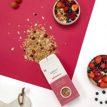 Gourmet-, natürlicher, glutenfreier Snack. Hergestellt mit Reinheitsprotokoll Hafer. Lecker allein oder in Parfaits.