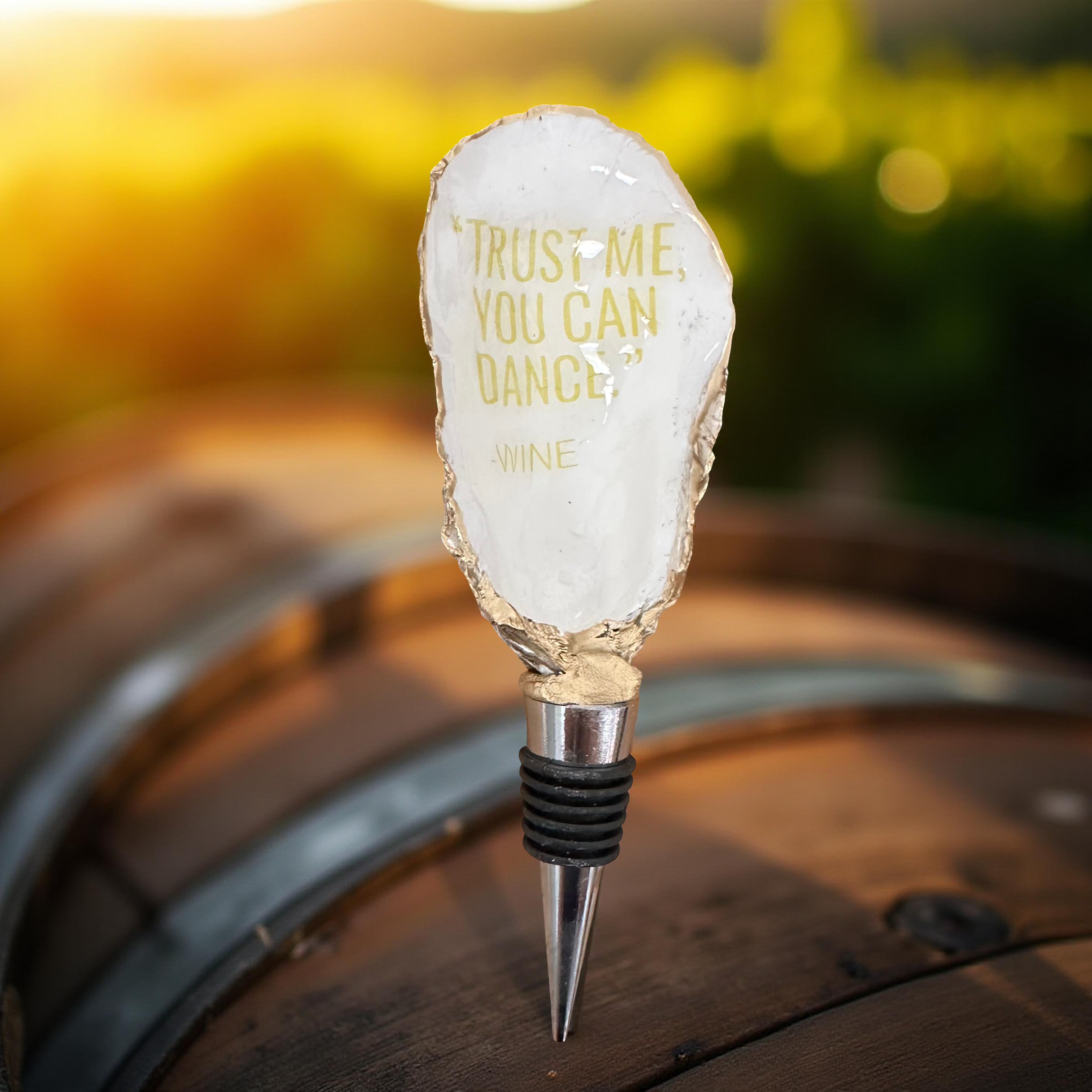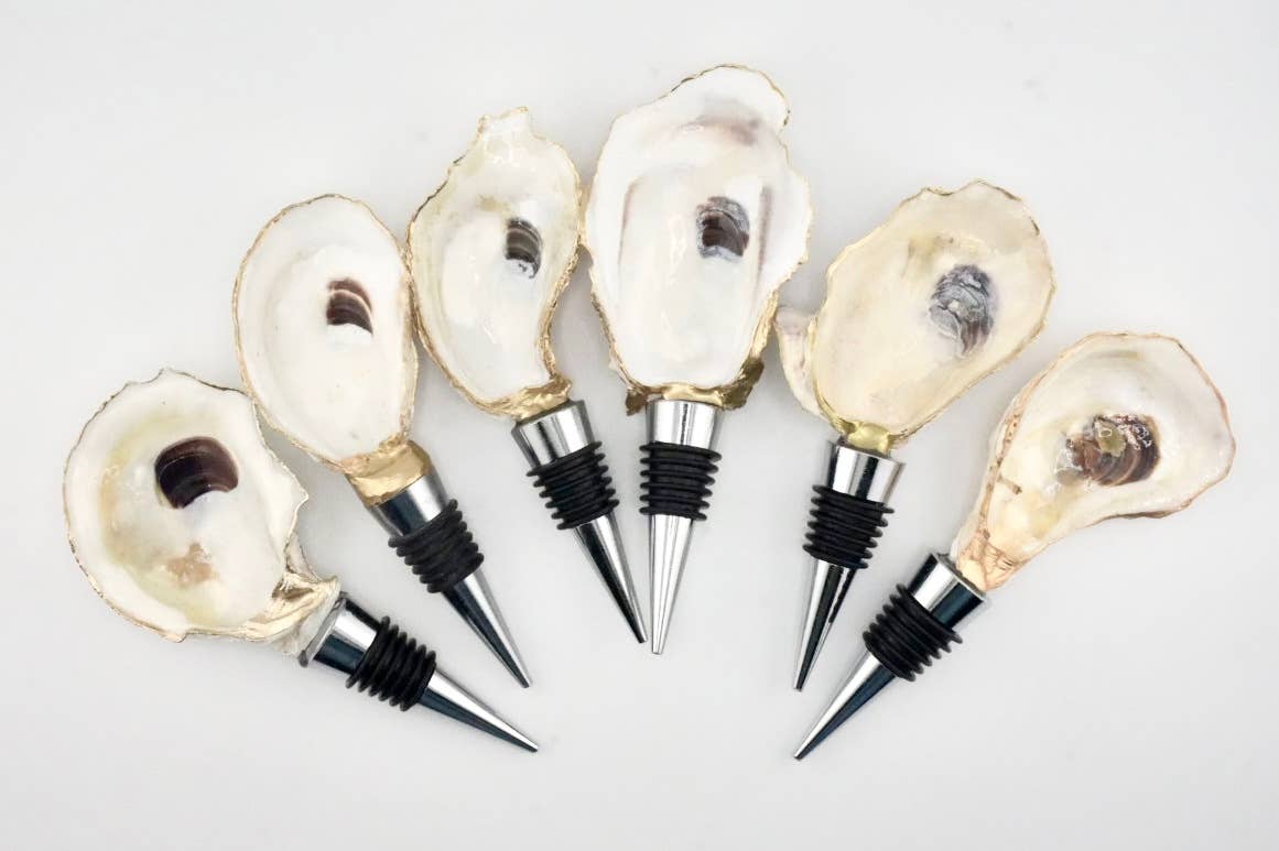 Verleihen Sie Ihrem Zuhause mit unserem Seahorse Coastal Oyster Shell Wine Stopper einen Hauch von Küstencharme. Jeder Stopper verfügt über eine lokal gesammelte Austernschale, die von Hand nivelliert und in kristallklarem Epoxidharz versiegelt wurde, um das verspielte blaue Seepferdchen-Design zu bewahren. Die Schale ist mit einem handvergoldeten Rand im 24k-Stil versehen und an einer lebensmittelechten Edelstahlbasis mit festen Silikonringen befestigt. Passt in die meisten Standard-Wein-, Olivenöl- oder Essigflaschen und ist sowohl ein charmantes Dekorationsstück als auch ein funktionales Werkzeug. Die natürliche Form der Schale und das handgefertigte Design sorgen dafür, dass jeder Stopper ein einzigartiger Schatz ist – perfekt für Strandliebhaber, nautische Gastgeber oder Hochzeitsgeschenke. Aus echten Connecticut-Austernschalen upcycelt Passt in die meisten Standardflaschen Nur Handwäsche; nicht spülmaschinenfest Handgefertigt von Shell Yeah by Jaks LLC, West Hartford, CT