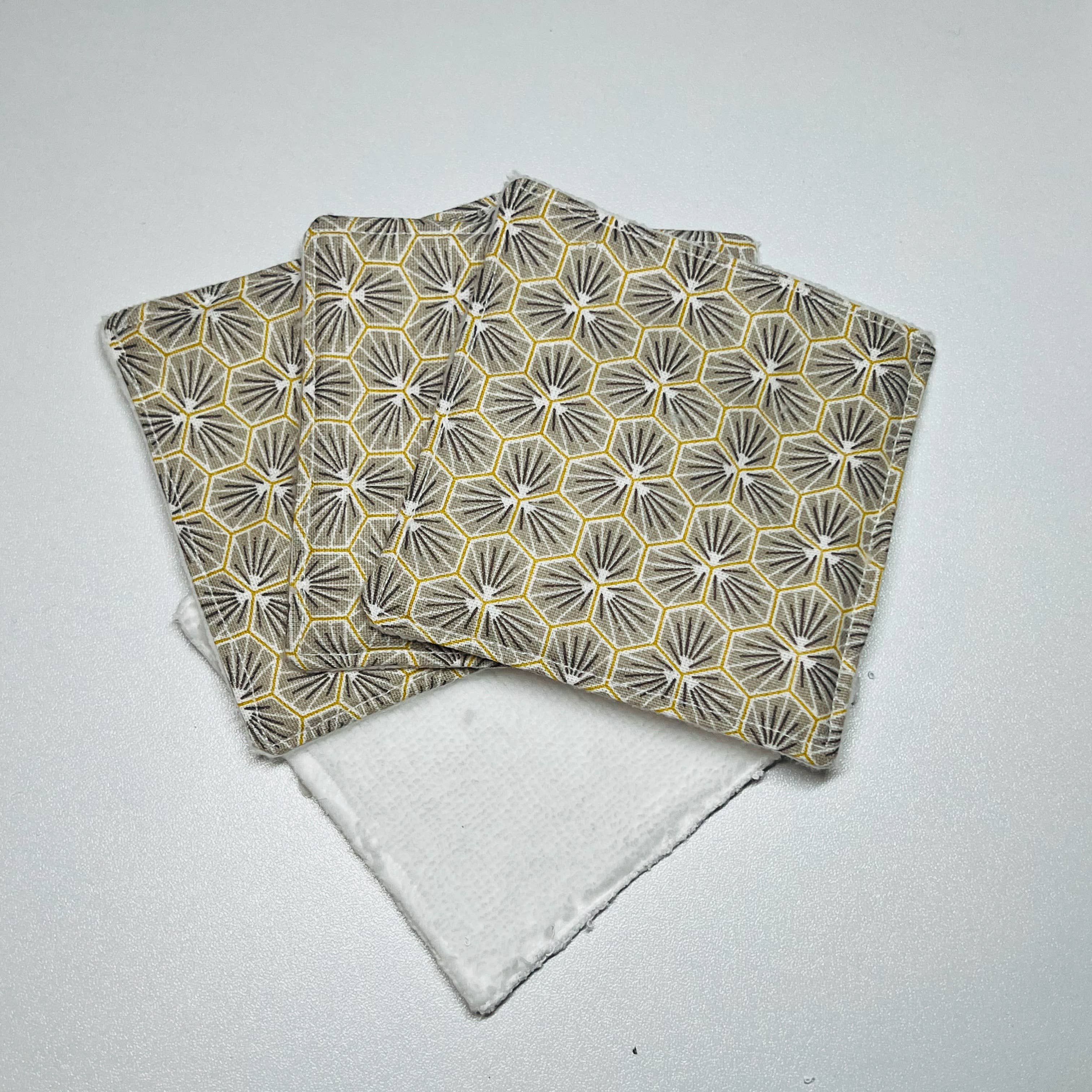 Waschbare Wischtücher mit einer bedruckten Baumwollseite und einer Seite aus 100% Bio-Bambusschwamm. Ideal zum schonenden Entfernen von Make-up oder zum Reinigen Ihres Babys. Ein Tuch misst ca. 10 x 10 cm.