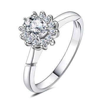 Moissanit-Verlobungsring in Blumenform aus 925er-Sterlingsilber im Großhandel
