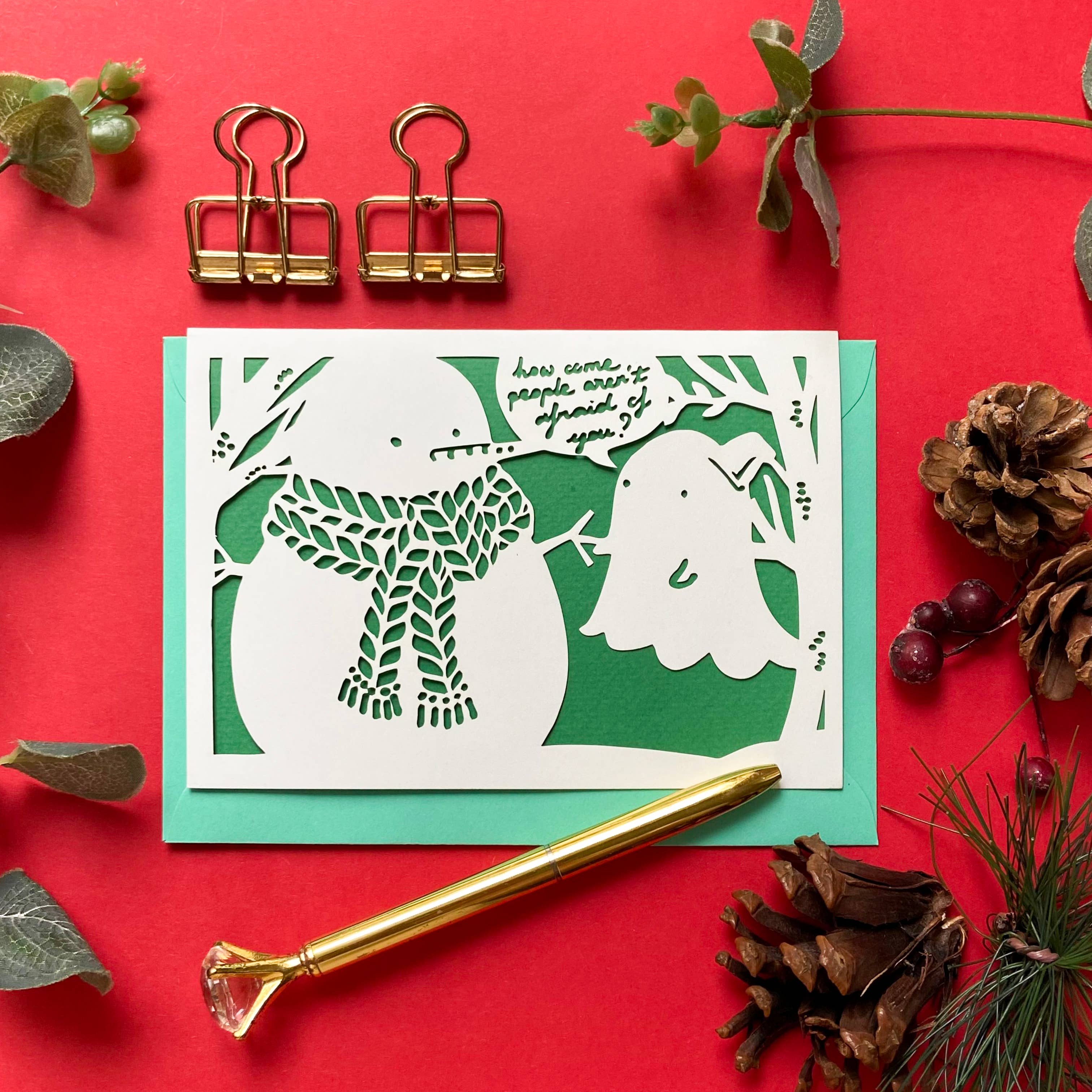 Als Teil unserer neu gestarteten „Mistaken Identity“ -Serie für das diesjährige Weihnachtsfest zeigt das Design einen molligen animierten Dinosaurier, der einen Weihnachtsbaum als einen seiner Kollegen verwechselt. Das humorvolle Design beinhaltet unsere Markenscherschnitttechnik mit Foliendruck für einen erhöhten Luxus-Look. Unser Baby-Dinosaurier wird mit grüner Folie gegen den festlichen Ausschnitt gedruckt - diese Karte wird sicherlich jedem Empfänger ein Lächeln zaubern. Die Karte wird 10,5 x 15 cm gemessen und wird mit einem grünen Weihnachtsumschlag geliefert. LEER NACH INNEN. Stolz handgestaltet und hergestellt in London, England.