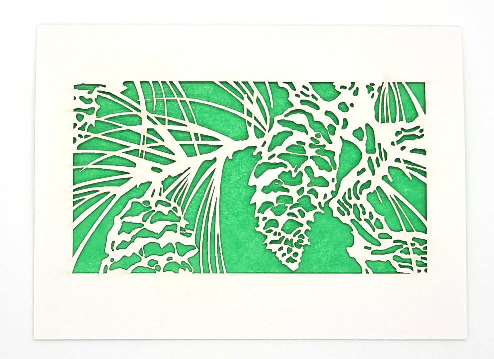 Ein geschmückter Weihnachtsbaum unter Vollmond. Lasergeschnittene Karte mit farbigem Seidenpapierträger. Innen leer Einzelne Karten werden in einer kompostierbaren PLA-Schutzhülle geliefert Kartengröße - A7 5 „x 7" A2 4,25 „x 5,5"